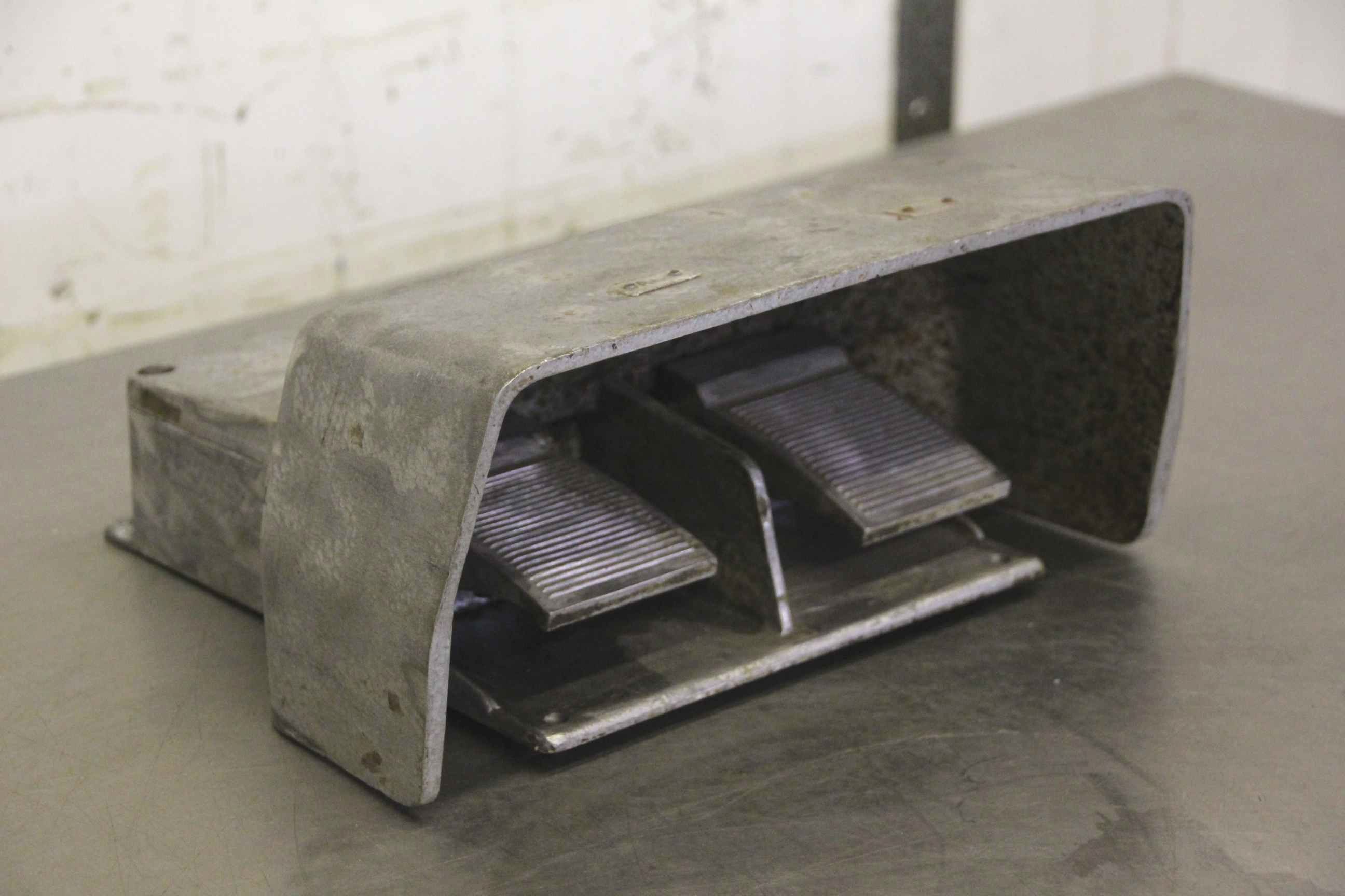 Control unit, control panel, control panel, control unit, foot switch, safety foot switch-Manufacturer: Steute, 2-pedal safety foot switch-Type: C S2 OS/OS-Metal housing: with protective cover, die-cast aluminum-Dimensions: 275/280/H130 mm-Weight: 2.6 kg