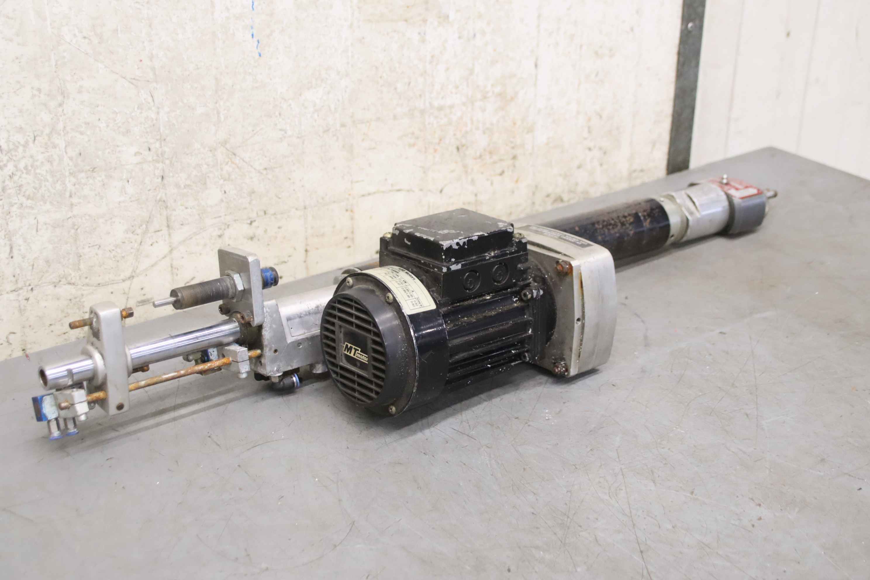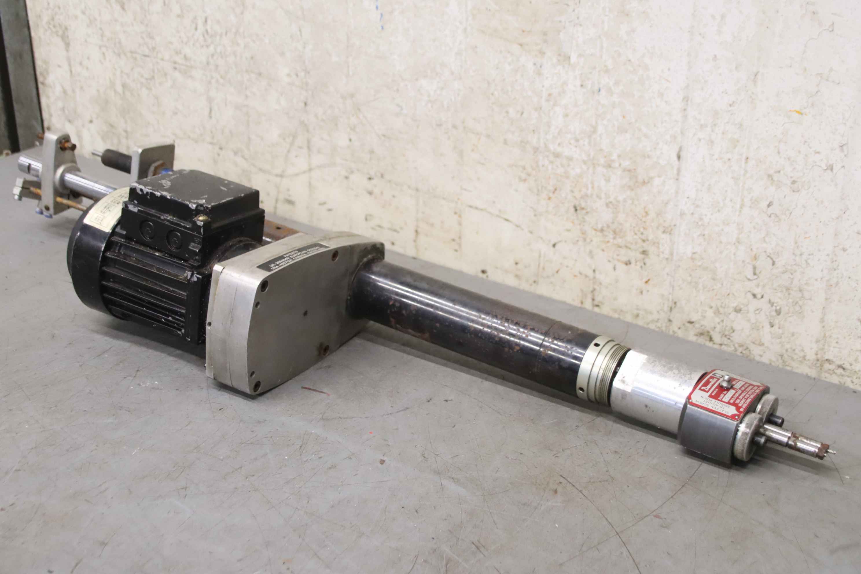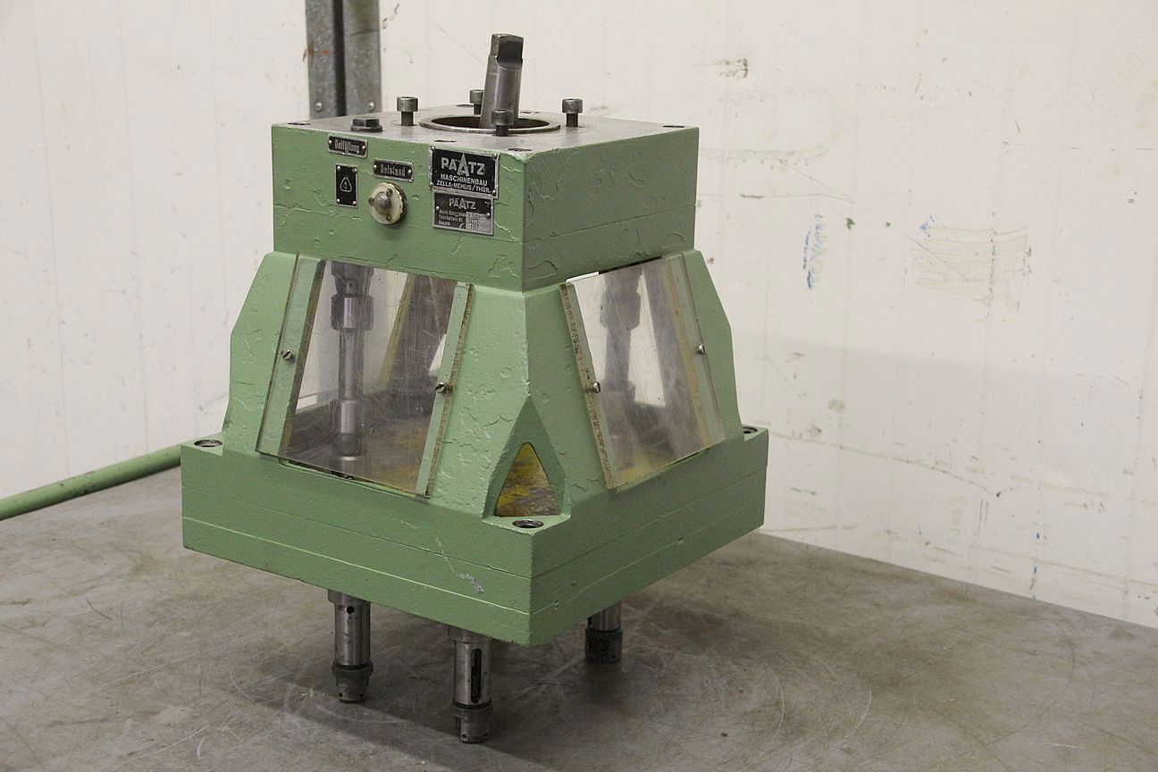 Multi-spindle head, multi-spindle drill head, drilling gearbox, feed drill -Manufacturer: Desoutter, AFD - AUTOMATIC FEED DRILLS AND THREADING TILLS -Type: AFDE-40 -Speed: 3800 rpm -Multi-spindle head: Desoutter type 174183, spacing 10 to 67 mm -Motor: ABB 0.33 kW -Built-in collets: Ø 3 mm -Quantity: 1 piece available -Dimensions: 890/220/H150 mm -Weight: 12 kg