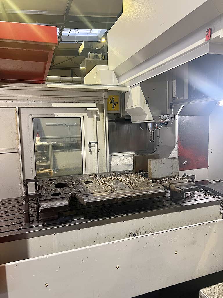 Доступен вертикальный трёхосный центр обработки ЧПУ с портальной обработкой. Ход X/Y/Z: 2050мм/1050мм/780мм, размеры стола X/Y: 2200мм/1000мм, максимальная нагрузка на столе: 3000 кг, держатель инструмента: HSK-63, инструментальные станции: 60, скорость: 18000 об/мин, быстрый оборот: 30 м/мин, скорость подачи: 10 м/мин. Размеры машины X/Y/Z: примерно 6500 мм/4200 мм/3800 мм, вес: примерно 20000 кг, контроль: Heidenhain, часы работы шпинделя: 10375 ч. Включая инфракрасный зонд, измерение инструментов IKZ и Blum. Доступна документация. Осмотр н ...