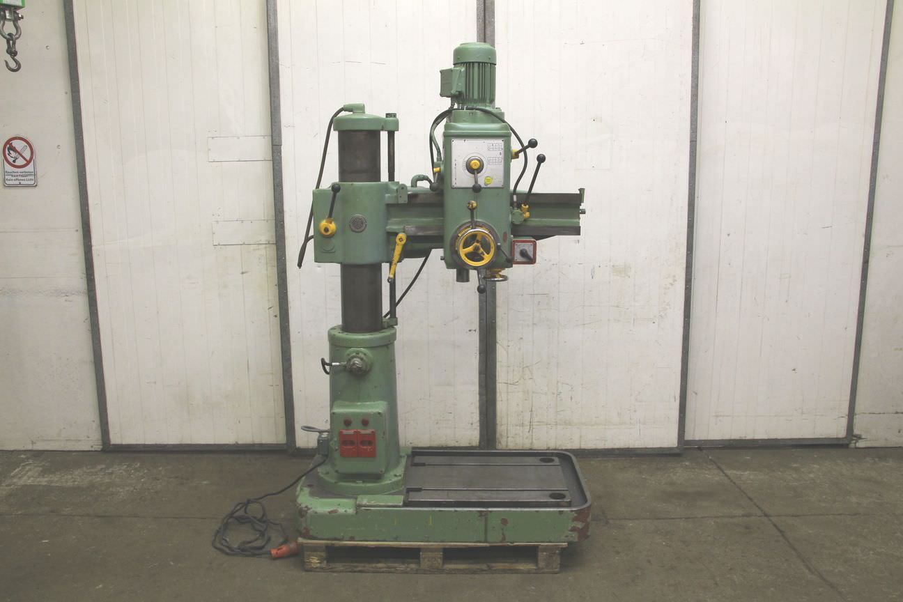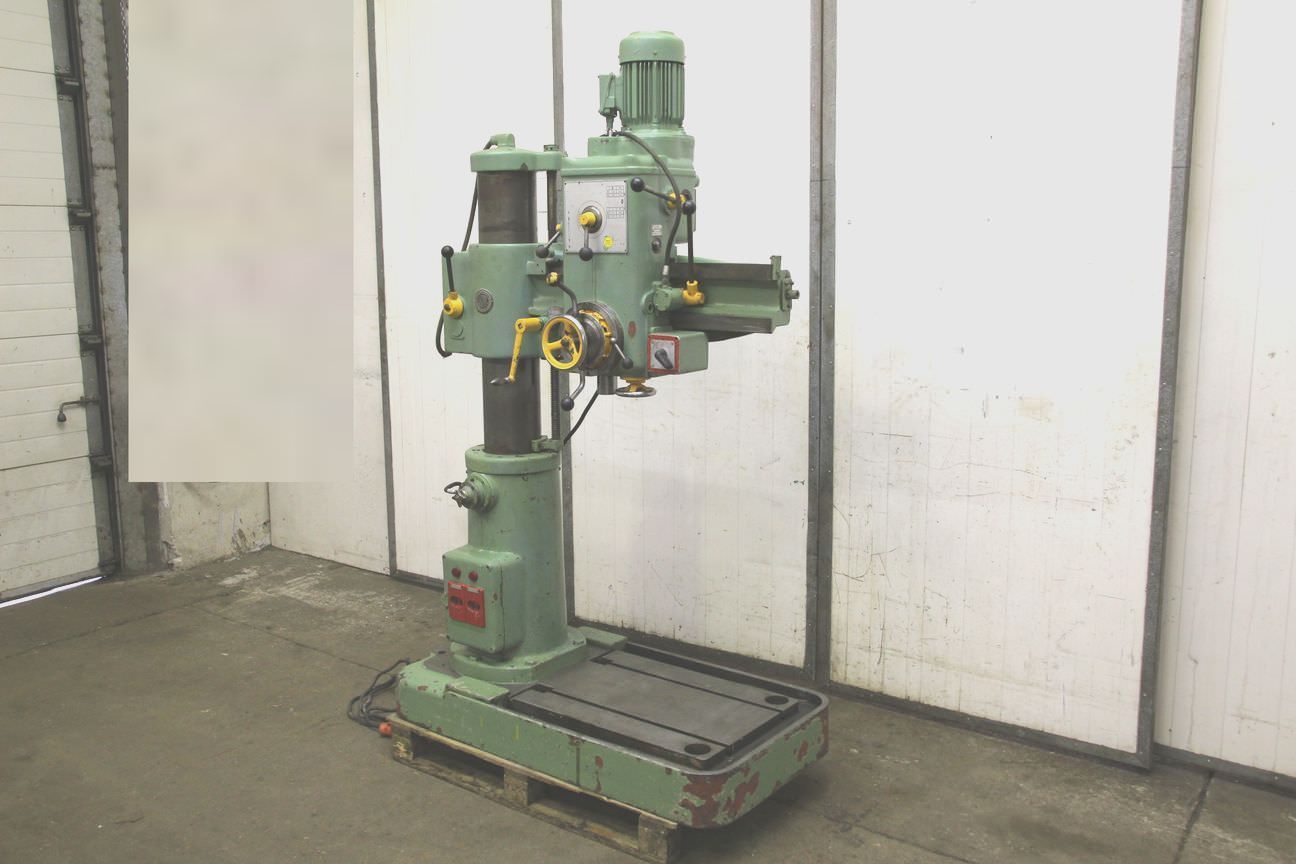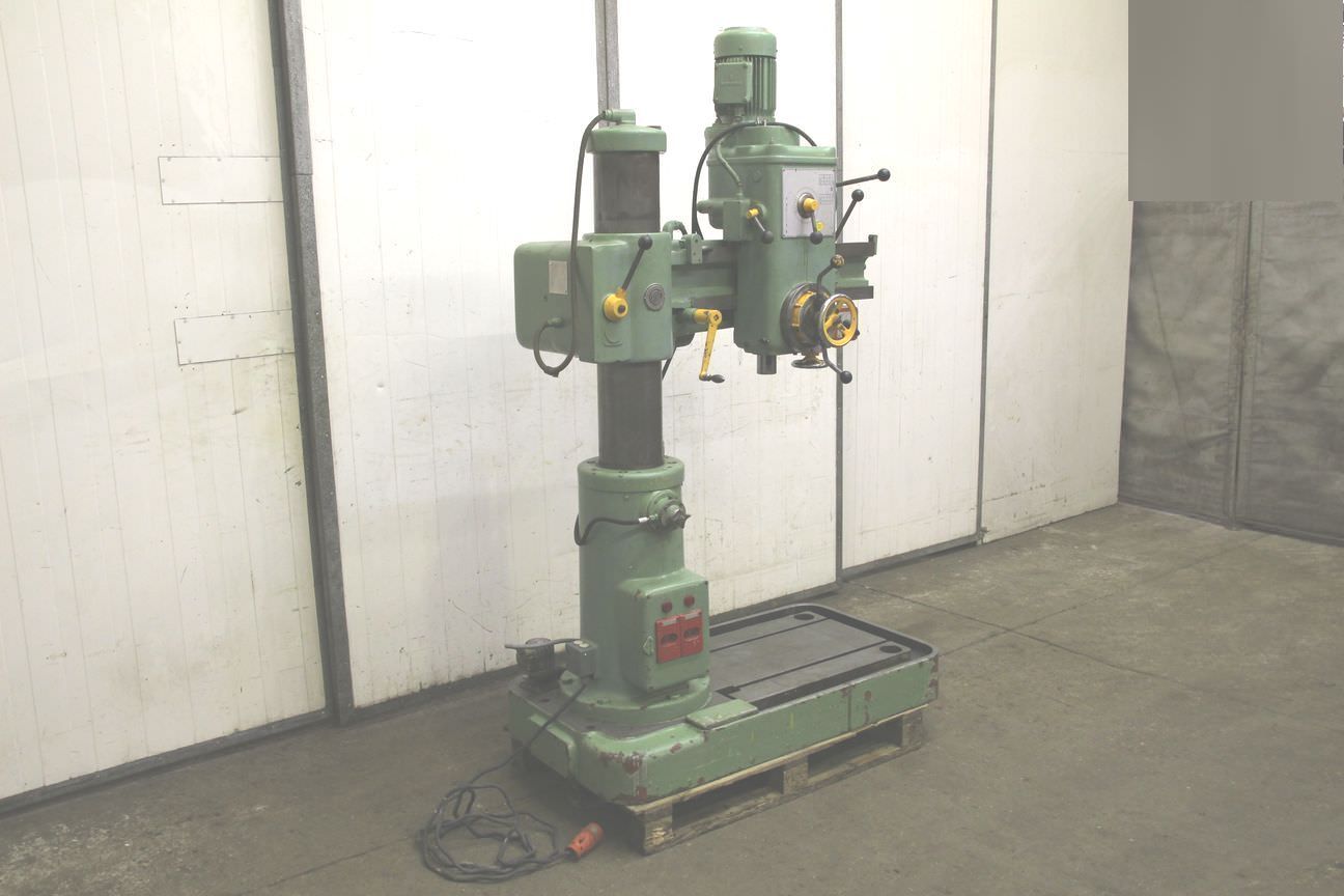 Radial drilling machine, drilling machine, boom drilling machine, universal drilling machine, milling machine-Projection: 645 mm-Taper mount: MK3-Speeds: 95 - 1050 rpm-Columns: Ø 190 mm-Spindle stroke: 195 mm-automatic feed: 0.05/0.10/0.20 mm/rev-Clamping table: 735 x 520 mm-Dimensions: 1350/705/H2170 mm-Weight: 1100 kg
