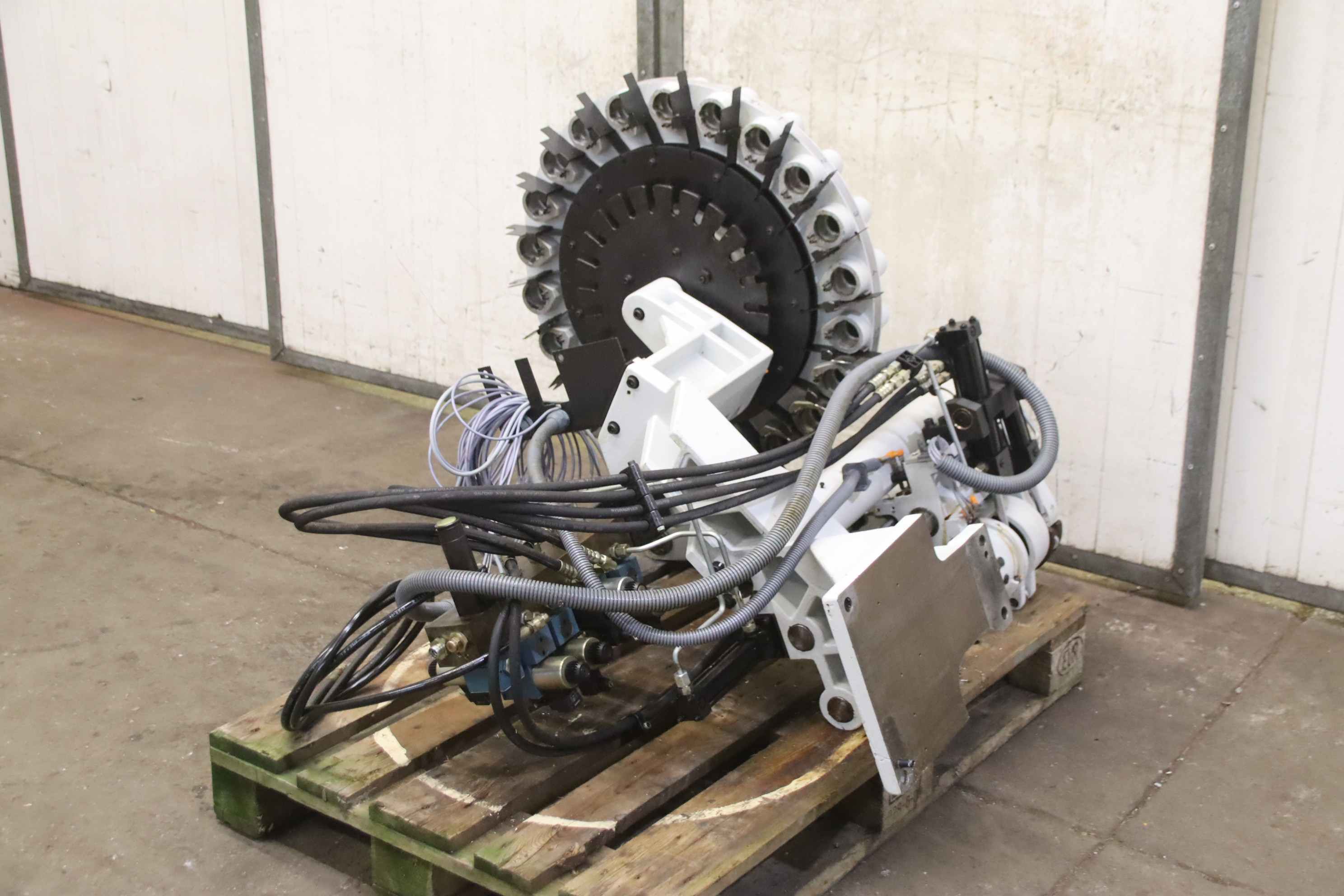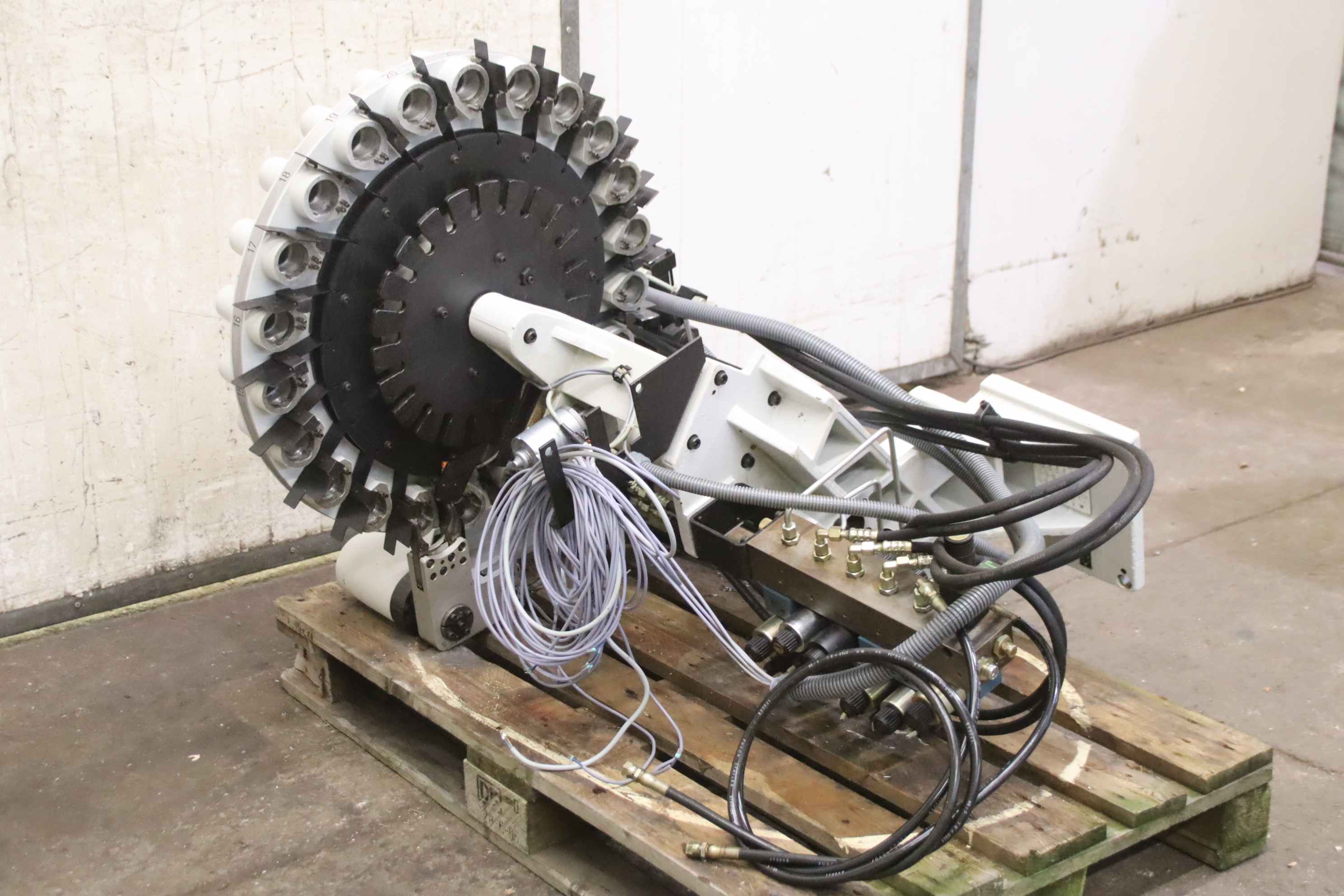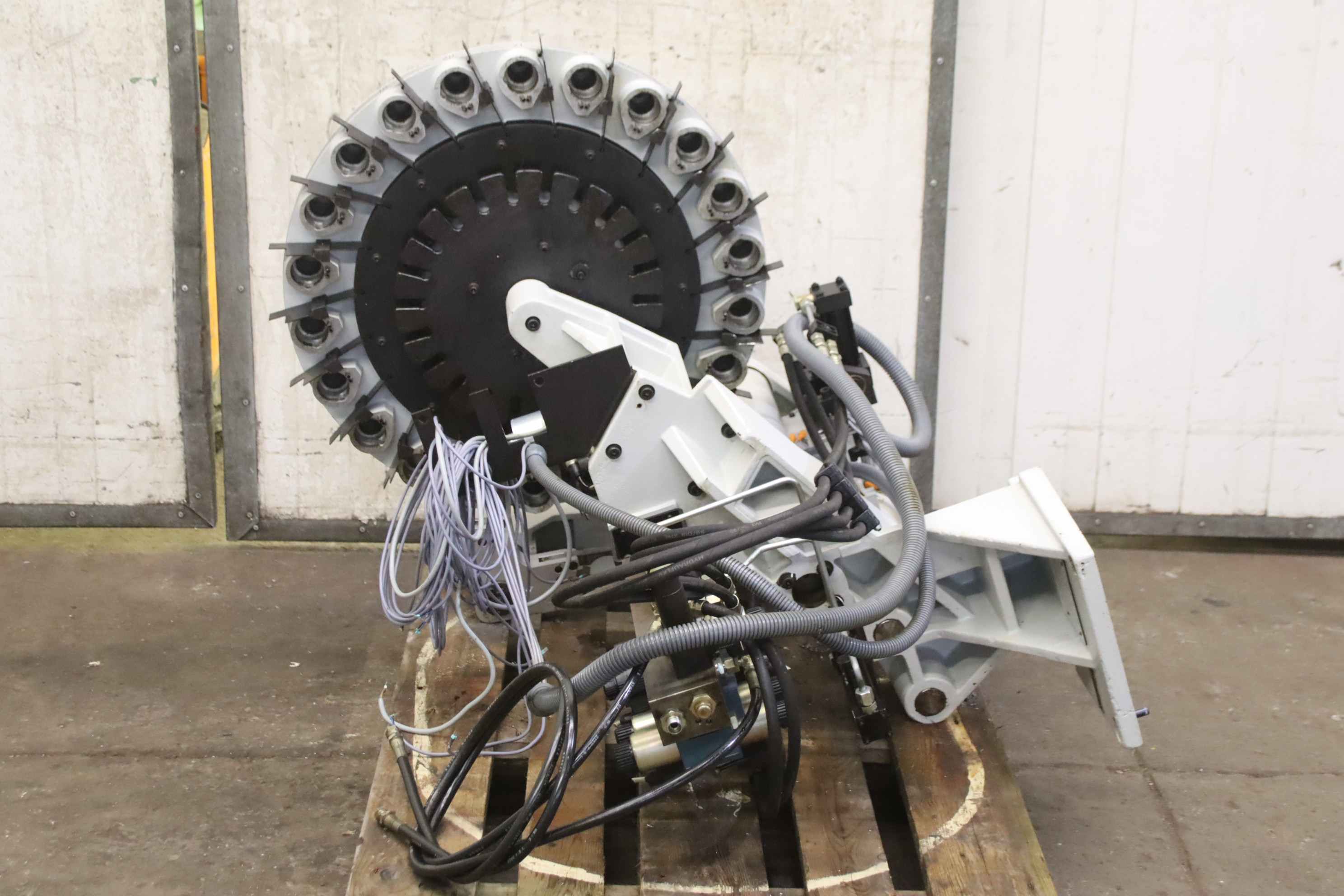 Tool changer chain, chain magazine, tool changing system, tool magazine-Manufacturer: Mikron, tool changer from CNC machining center Mikron UME 600-for: max. 22 shots-Intake: SK40-Dimensions: 1200/1150/H860 mm-Transport weight: 294 kg