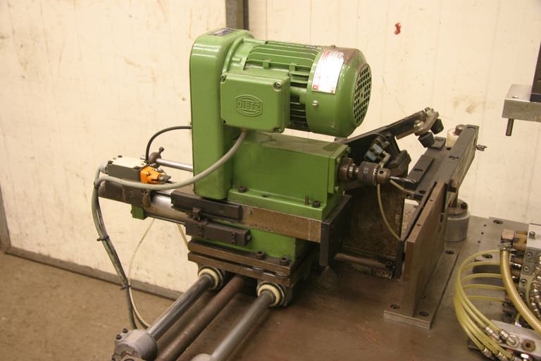 Spindles, machining unit, automatic drilling machine, drilling machine, pillar drilling machine Multi-spindle drilling machine -System without control -1x Spindle machining units -2x sleds -Max. feed stroke: 110 mm -Speed: 1400 rpm -Built-in collet: 6 mm -Weight: 350 kg