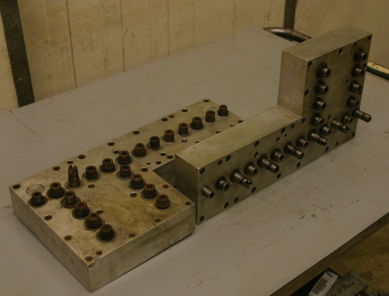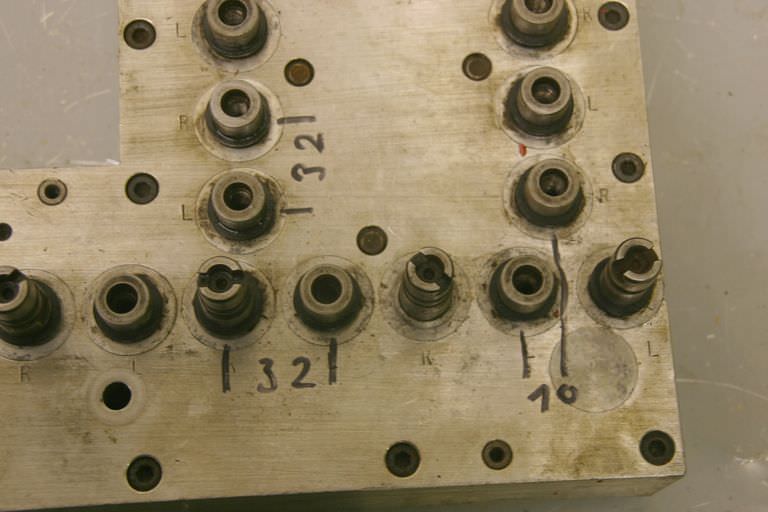 Multi-spindle head, drill beam, multi-spindle drill head, articulated multi-spindle head, row drilling machine, dowel drill head, dowel drilling machine, drilling gearbox -Number: max. 18x drill bits -Recording: M8 -right/left: rotating alternately -Spacing between rows of drill bits: 32 mm -Drill bit spacing: 32 mm -Number: 2 drill heads available -Price: per piece -Dimensions: 285/125/H90 mm -Weight: 8 kg/piece