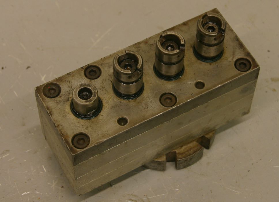 Multi-spindle head, drill beam, multi-spindle drill head, articulated multi-spindle head, row drilling machine, dowel drill head, dowel drilling machine, drilling gearbox -Number: max. 3x drill bits -Recording: M8 -right/left: rotating alternately -Drill bit spacing: 39 mm -offset: 5 mm -Number: 2 drill heads available Price: per piece -Dimensions: 100/90/H90 mm -Weight: 2 kg