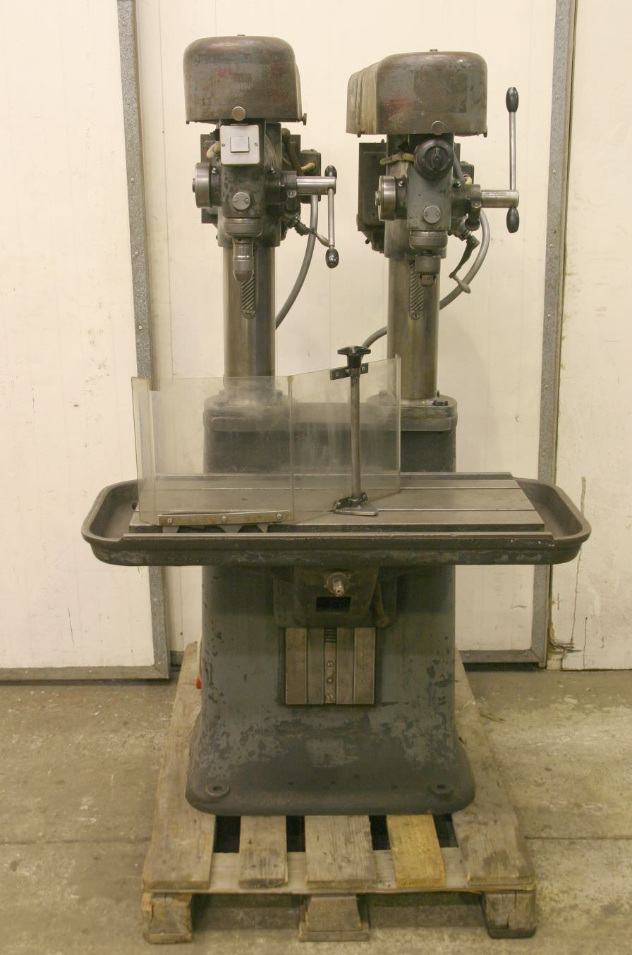 Twin-spindle drilling machine, row drilling machine, drilling machine, bench drilling machine, pillar drilling machine -Spindle mount: B10 -Table size: 770 x 300 mm -max. intermediate dimension: mm -Protrusion: 200 mm -Speeds: 250-4000/365-4150 rpm -Spindle stroke: 100 mm -Dimensions: 960/970/H1600 mm -Weight: 512 kg