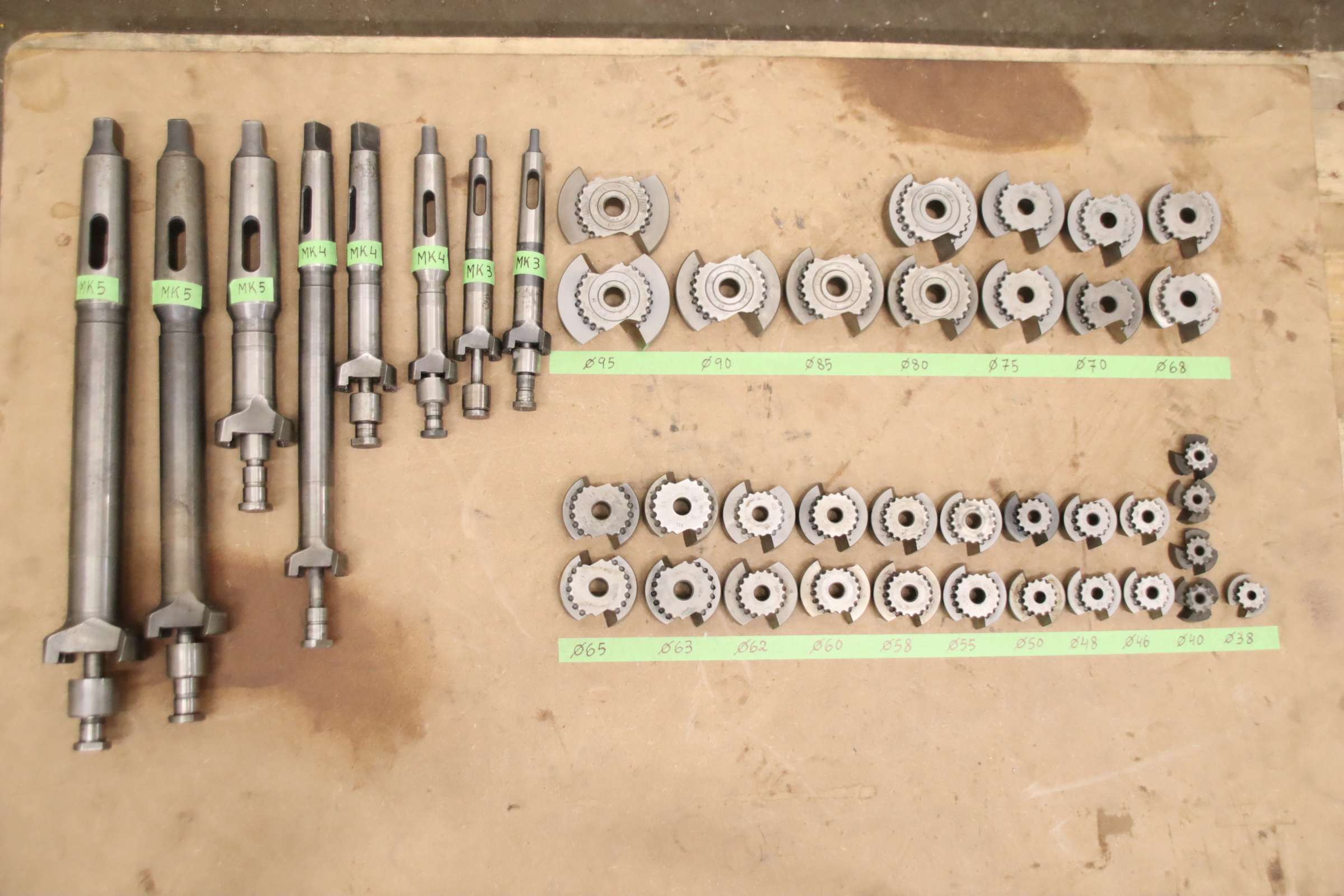 Attachment holders, standard holders and accessories, spiral drill bits, BILZ spiral drill bits, reaming bits, BILZ reamers, BILZ holders, tool holders, drill bit mounts, twist drills -Mounted tool holder: 8 pieces -Recordings: MK5, MK4, MK3 -Spiral drill bits: 35 pieces -Sizes: Ø38 mm - Ø95 mm -Dimensions: see photos -Submission/Price: complete -Transport dimensions: 550/300/H70 mm -Weight: 28 kg
