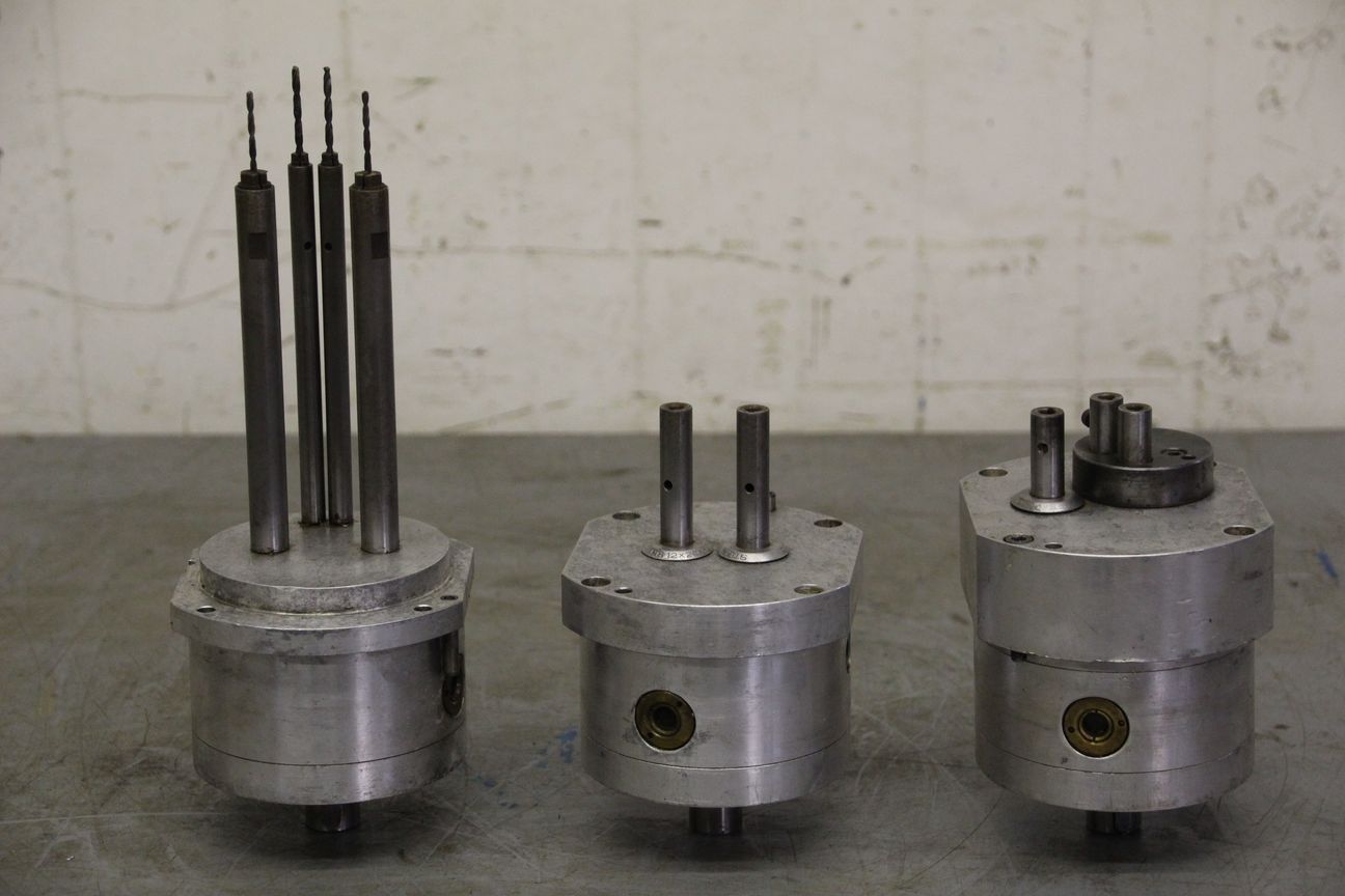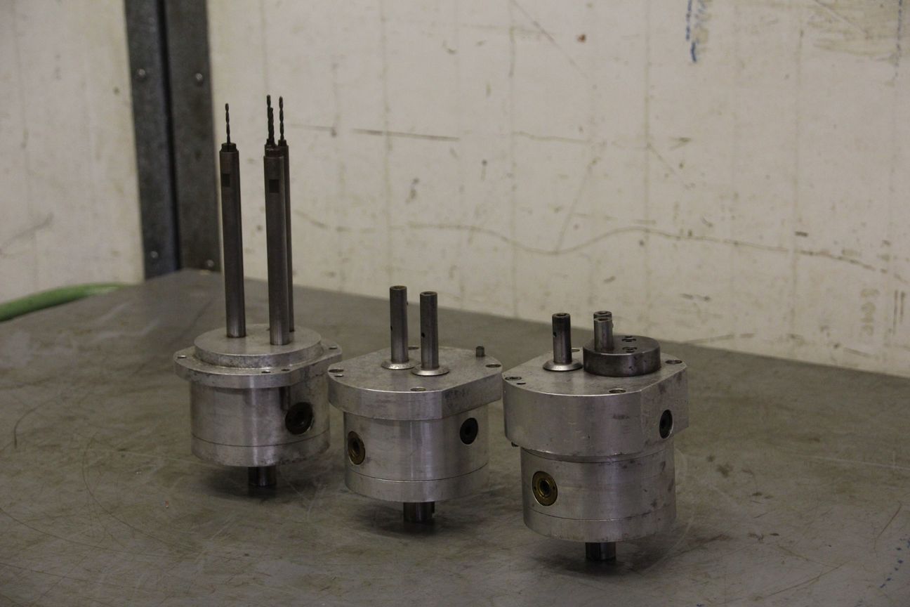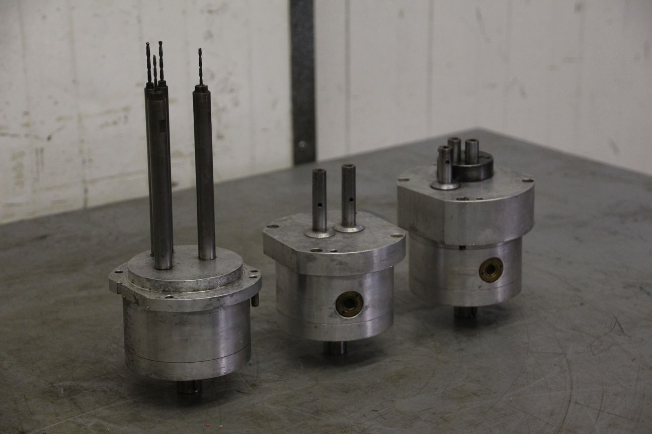 multi-spindle head, multi-spindle drilling head, drilling gear-Multi-spindle head: 5 spindles-Hole: Shaft Ø 20 x 25 mm-Drill holder: Ø 6 mm-Dimensions: see photos-Total dimensions: Ø 120/165 mm-Weight: 2.0 kg