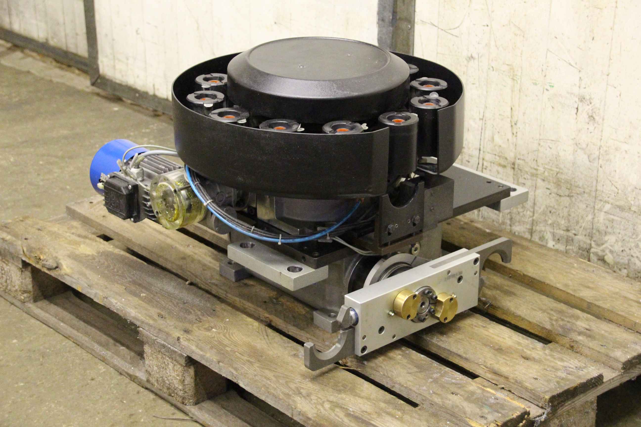 Tool changer chain, chain magazine, tool changing system, tool magazine -Spare part comes from a BJM machining center type ALBZ-145 -Intake: HSK40 -Tool changing system: CTM42 DO 12P3 400 -CUT changer: CUT42-V-90-60-D VX -RIG changer: RIG 06-12-P003 VX VCP IN DA -Drive engines: MGM -Dimensions: 730/700/H450 mm -Weight: 160kg