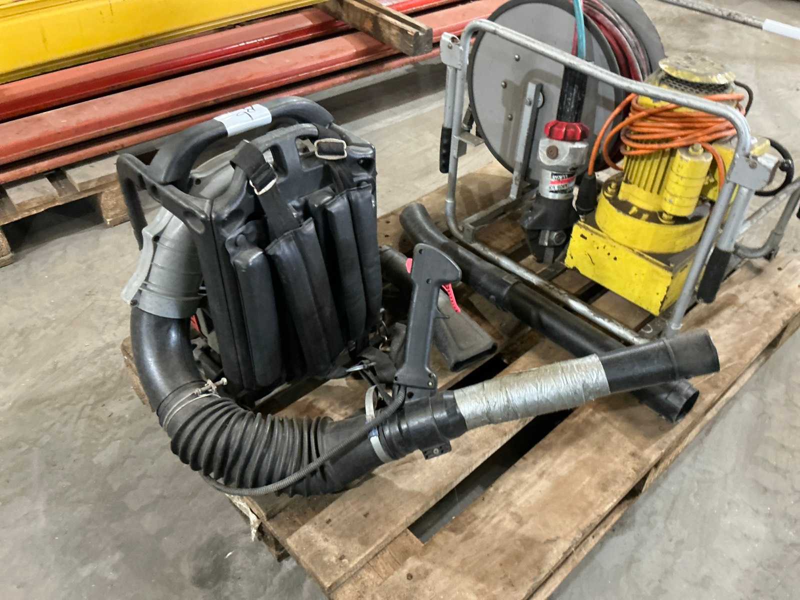 Weight 12 kg Dimensions 52 × 40 × 56 cm Cubic capacity 63.3 cc Drive gasoline Type of Engine 2-stroke Power 3.6 hp / 2.7 kW Max. speed 6800 rpm Air emissions 1440 m3 p/hr / 24 m3 p/min Fuel tank capacity 1.6 litres Mixing ratio 1:25 Type of fuel Euro 98 Type Oil 2-stroke Noise level 111 dB CE marks Auction-ID: A1-40417-109