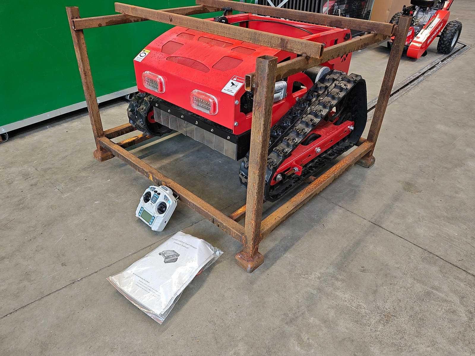 Engine: 224 cc 4-stroke petrol engine, cutting width: 53 cm, maximum range: Controllable up to 600 meters distance. Fuel tank: 1 litre, consumption: about 0.7 litres per hour. Maximum angle of inclination: up to 45 degrees, maximum speed: 3 km/h. Cutting height: Adjustable between 3 and 12 cm Control system: Remote control via wireless transmitter, with a range of up to 600 meters. Design: Robust and suitable for slopes up to 45 degrees. Ease of use: Easy operation and adjustability for optimal mowing results. Safety: incl. emergency stop and obstacle detection for safe use on steep slopes. A powerful 224 cc 4-stroke engine and a cutting width of 53 cm. Auction-ID: A1-40230-38