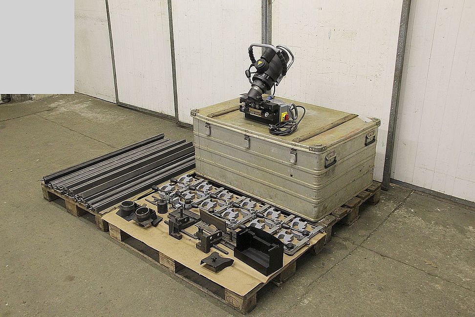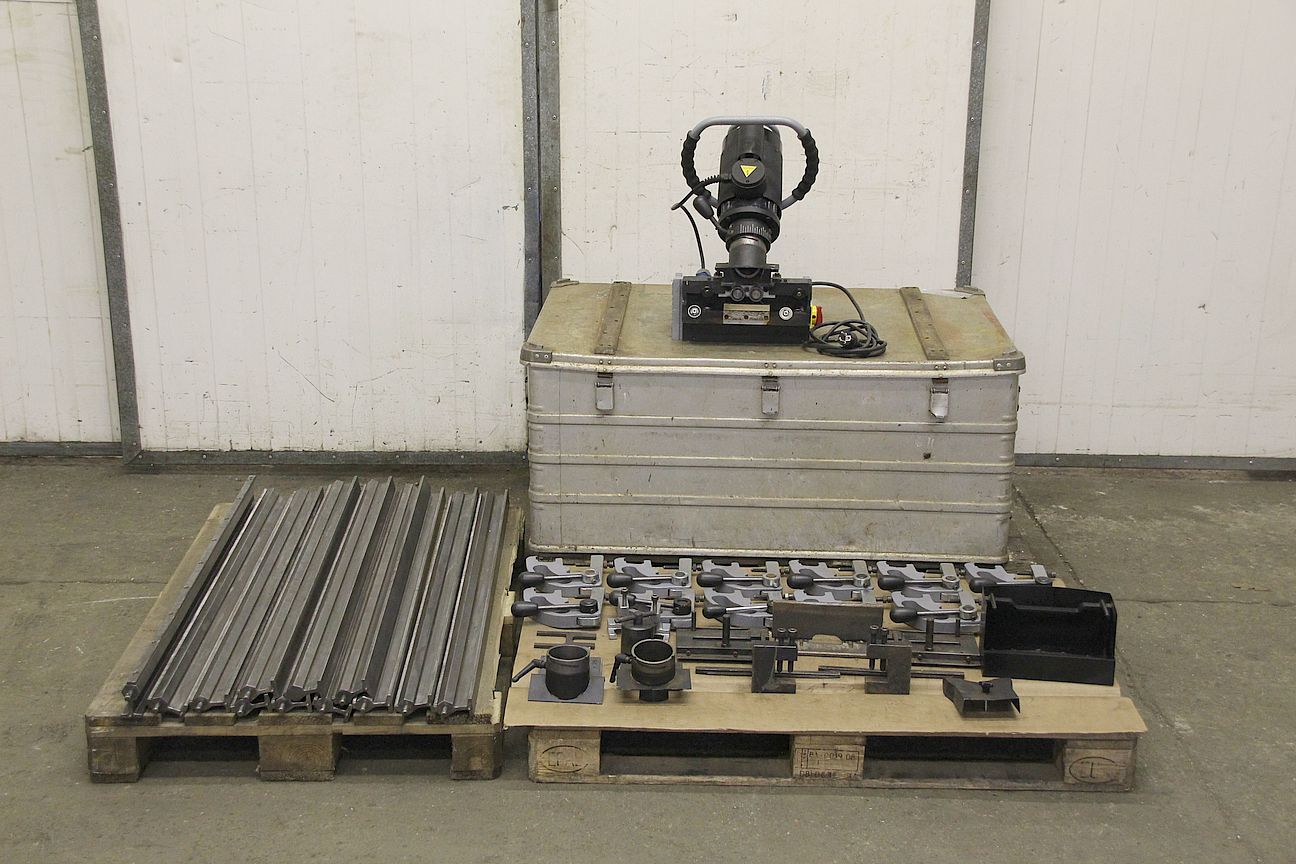 Weld beveller, weld bevel former, weld seam preparation, weld bevel forming machine, edge milling machine, edge milling machine, mobile milling machine-with: rail system-12x rails length: 1210 mm-Bevel length: max. 30 mm-max material thickness: 40 mm-with: electronic feed device electronically adjustable-Dimensions box: 1170/780/H510 mm-Weight: 320 kg