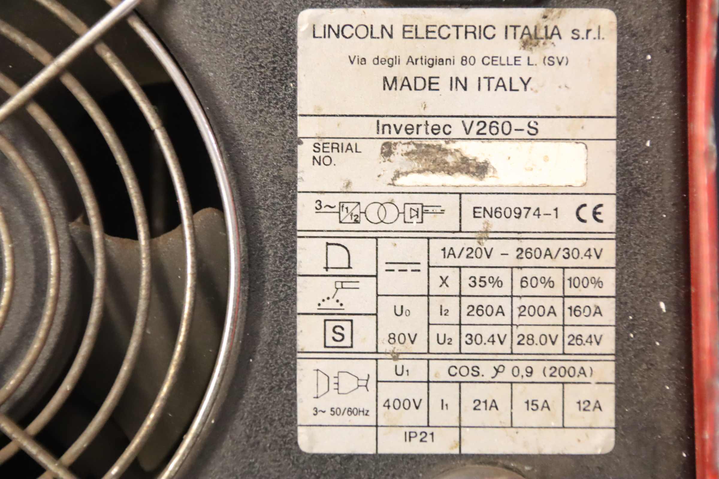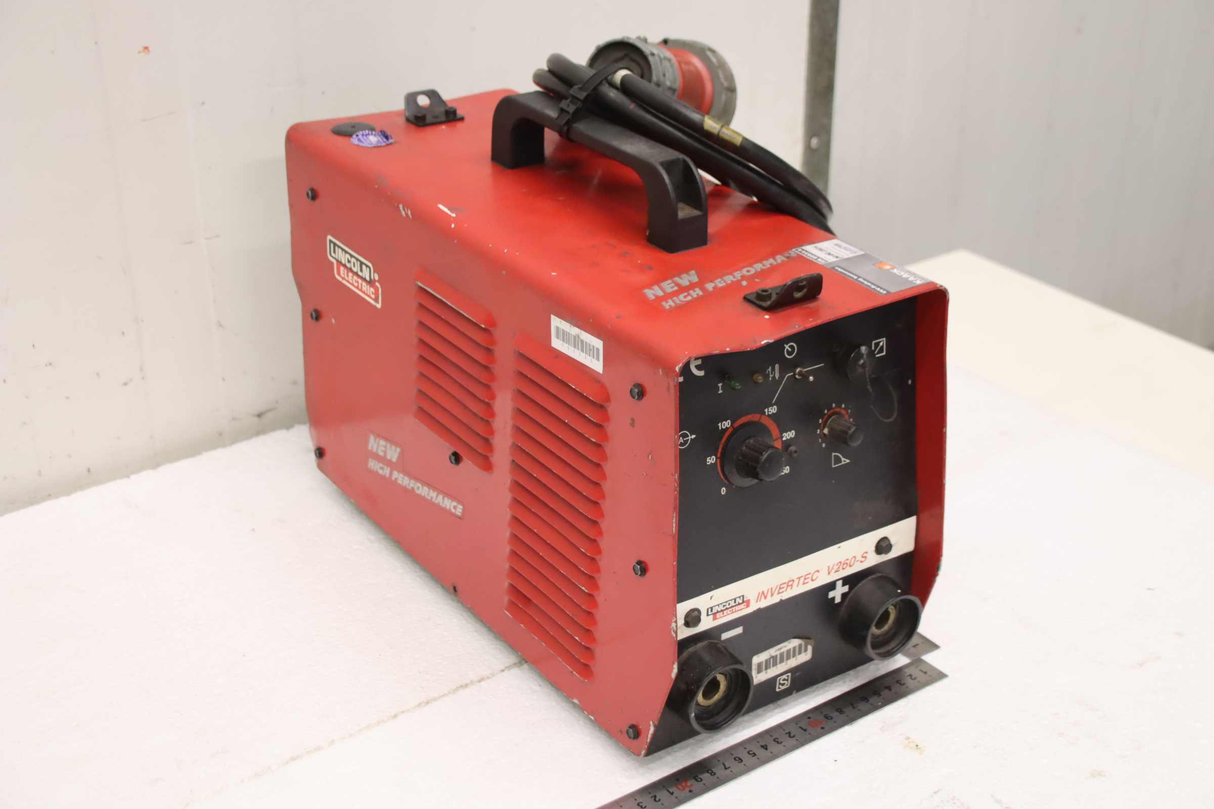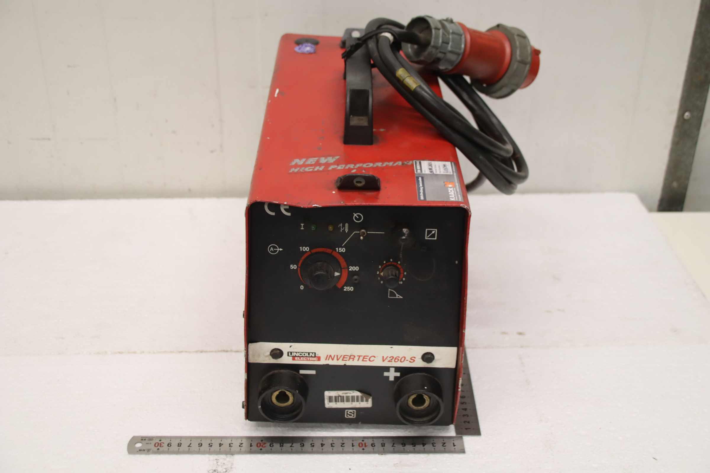 TIG welding machine, inverter welding machine, TIG welding machine, inverter welding machine -Manufacturer: Lincoln Electric, TIG welding machine, inverter welding machine type Invertec V260-S -Welding power: max. 260 A -Dimensions: 475/200/H345 mm -Weight: 16.5 kg