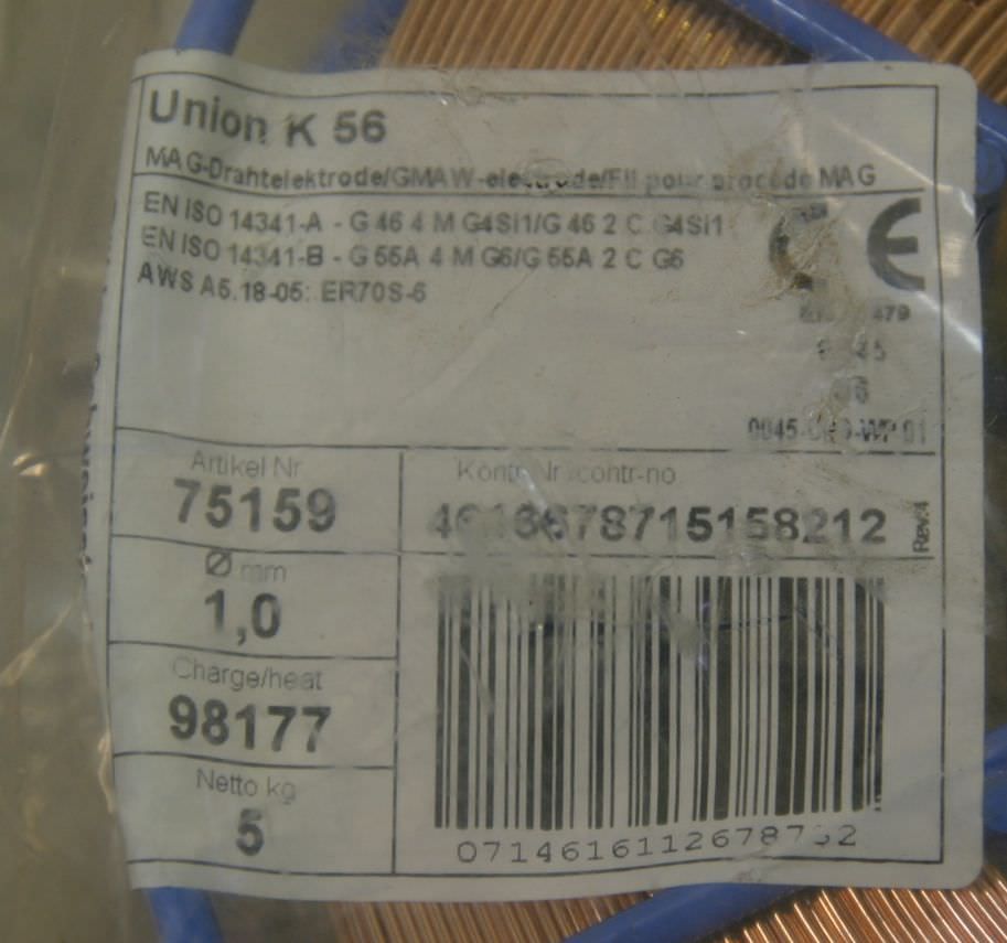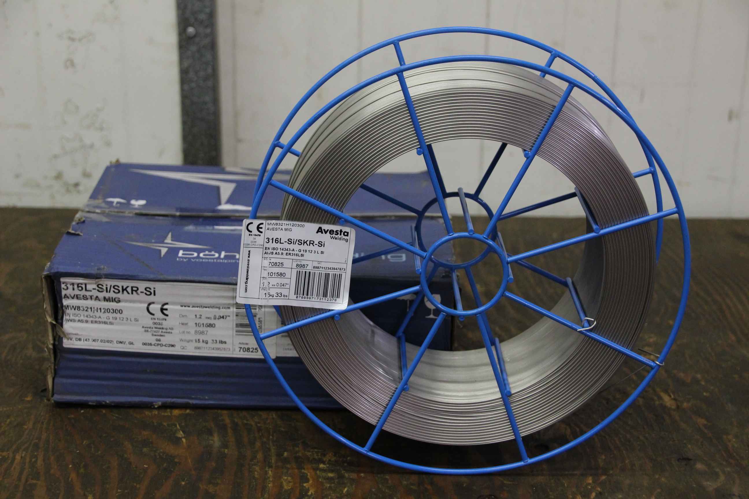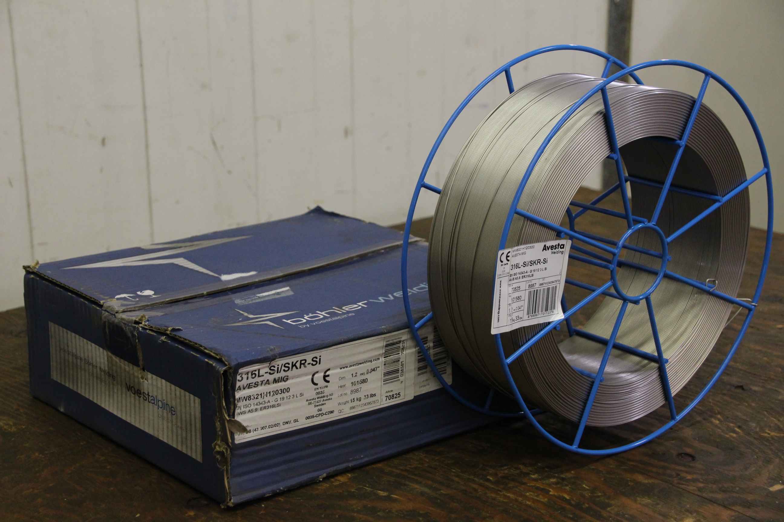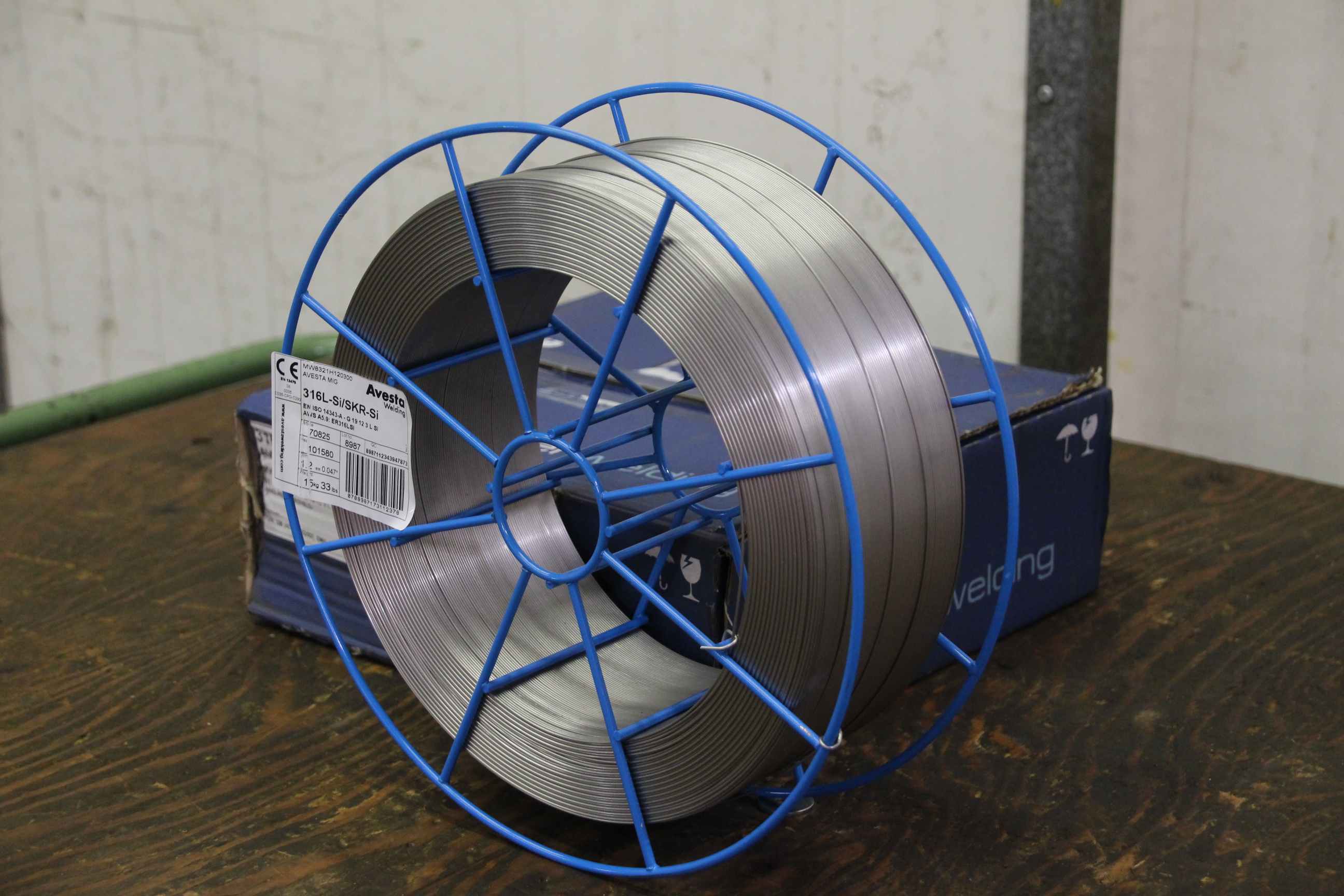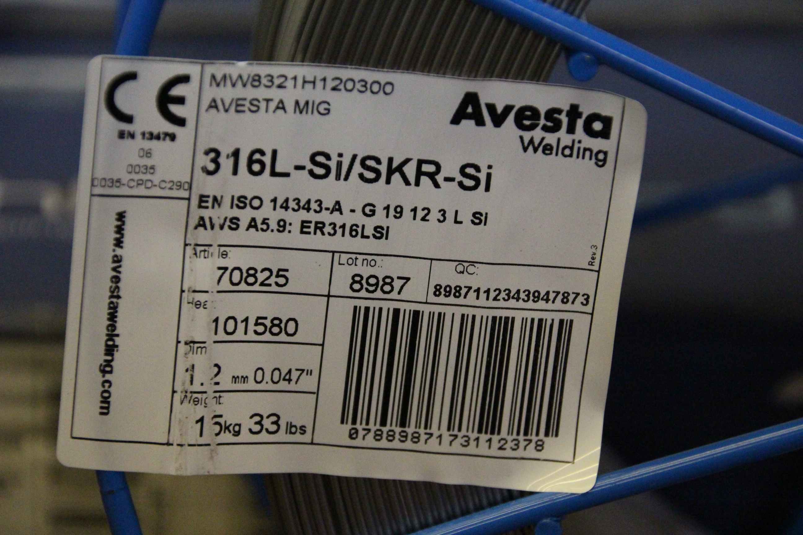 Wire electrode, welding wire, welding wire -Manufacturer: Avesta, welding wire 316L-Si/SKR-Si -Thickness: Ø 1.2 mm -Dimensions: Ø 300/100 mm -Roll weight: 15.9 kg