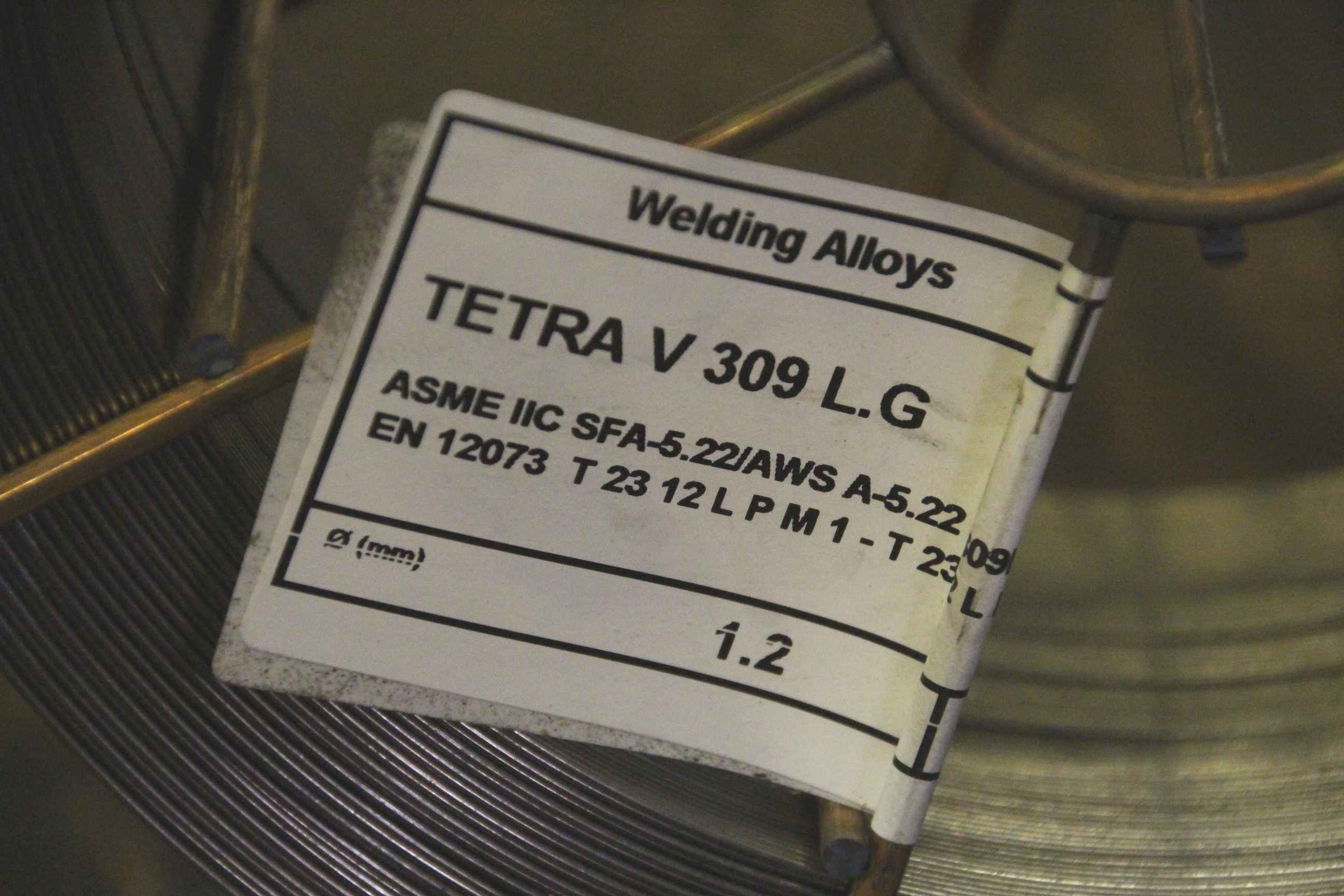 Wire electrode, welding wire, welding wire -Manufacturer: Tetra, welding wire V 309 LG -Thickness: Ø 1.2 mm -Dimensions: Ø 300/100 mm -Weight of roller: 12 kg