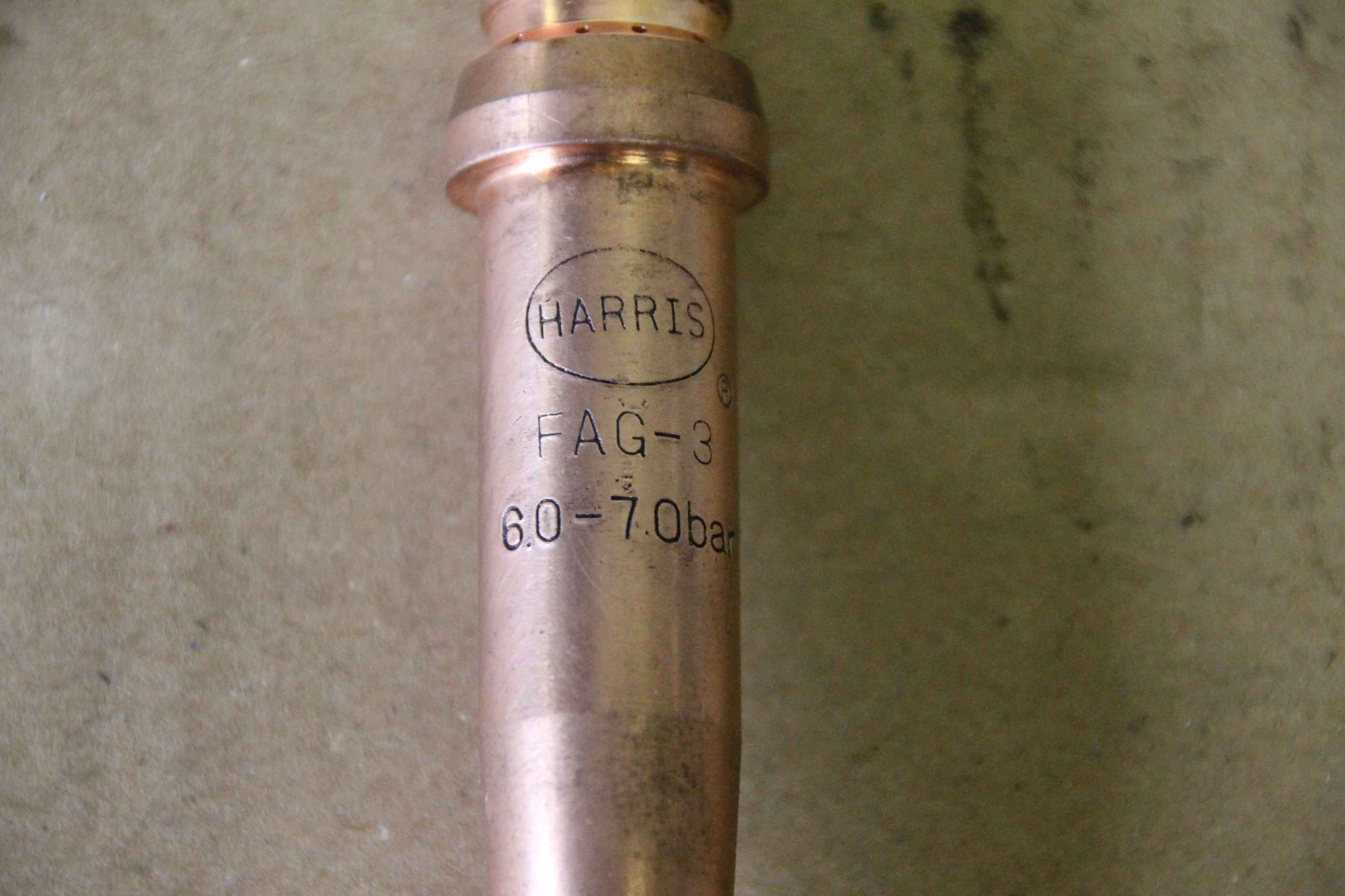 Plasma hose assembly, welding torch, MIG/MAG torch, hand-held arc torch, gouge, gouge nozzle -Harris: FAB3 jointing nozzle -Pressure: 6.0 - 7.0 bar - Price: per piece - Quantity: 14 pieces -Dimensions: 110/25/H25 mm -Weight: 0.1 kg/piece