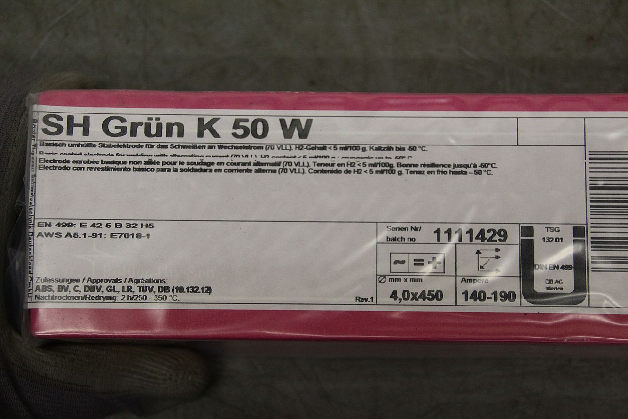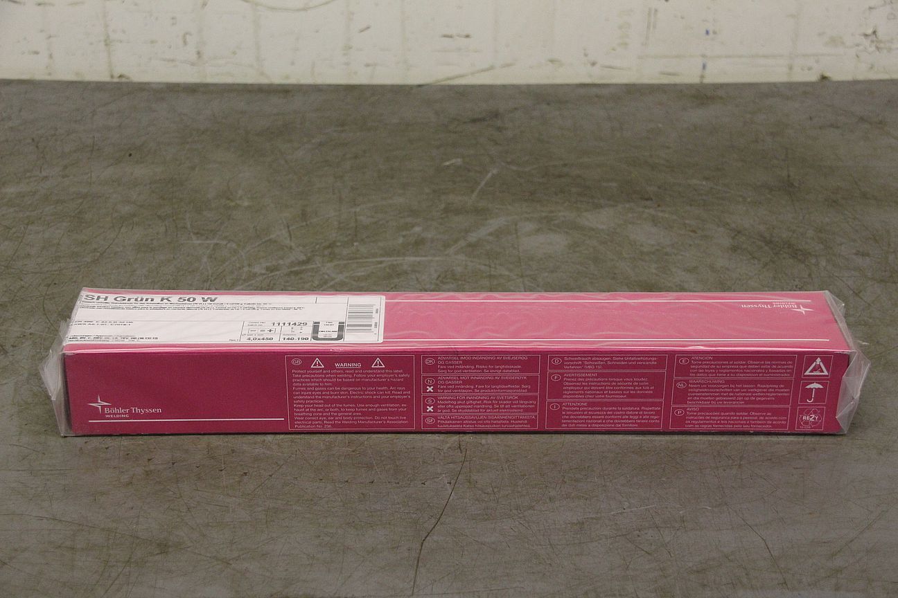 Stick electrodes 4.0 x 450 -Type: SH Green K 50 W -Price: per package -Number: 6 packages available -Weight per package: 6.2 kg