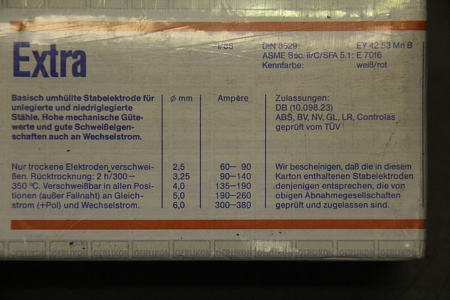 Stick electrodes 4.0 x 450-Type: Extra EY 42 53 Mn B-Price: per package-Number: 29 packages available-Weight per package: 5.4 kg