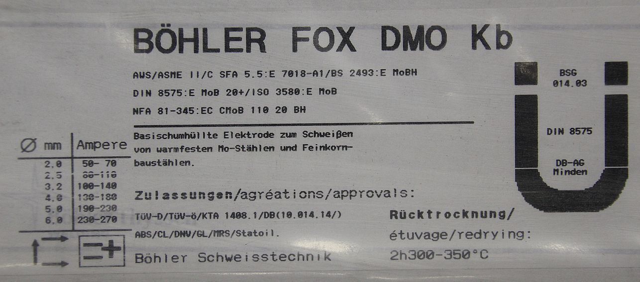 Stick electrodes 4.0 x 350-Type: FOX DMO Kb-Price: per package-Number: 7 packages available-Weight per package: 4.6 kg