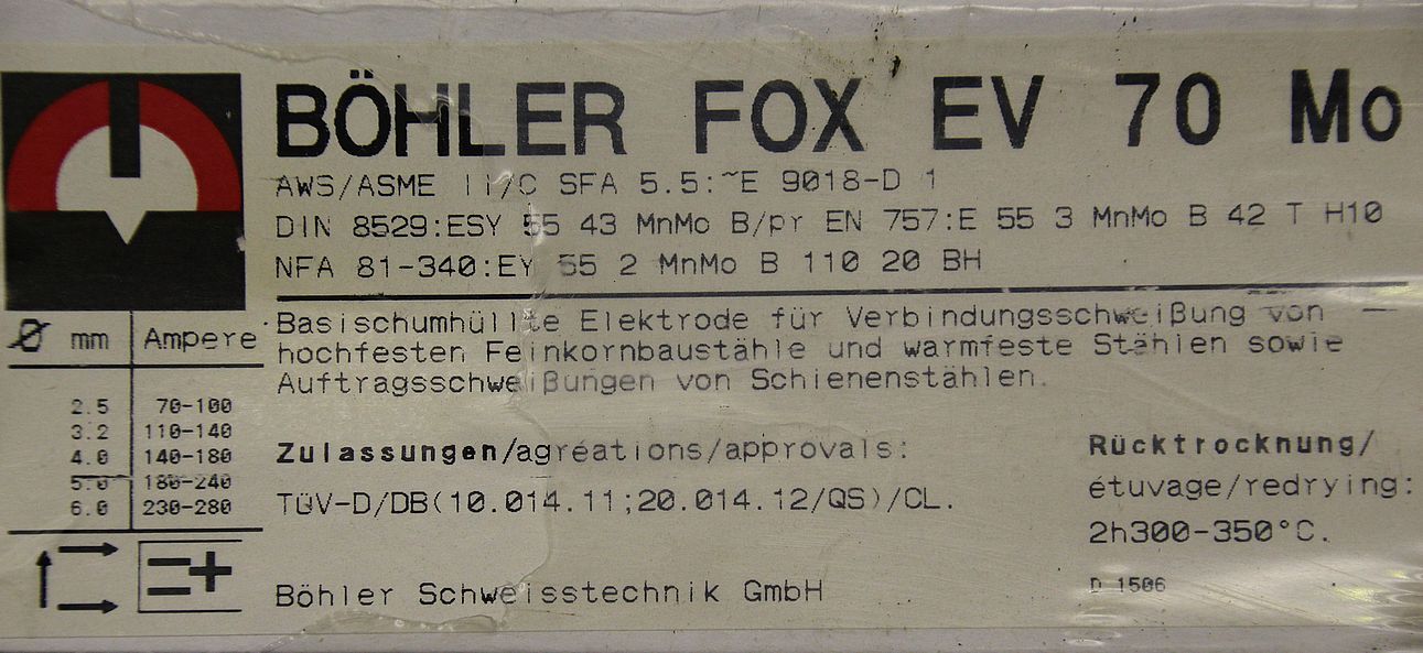 Stick electrodes 3.2 x 350 -Type: FOX EV 70 Mo -Quantity: 1 package available -Weight: 4.5 kg