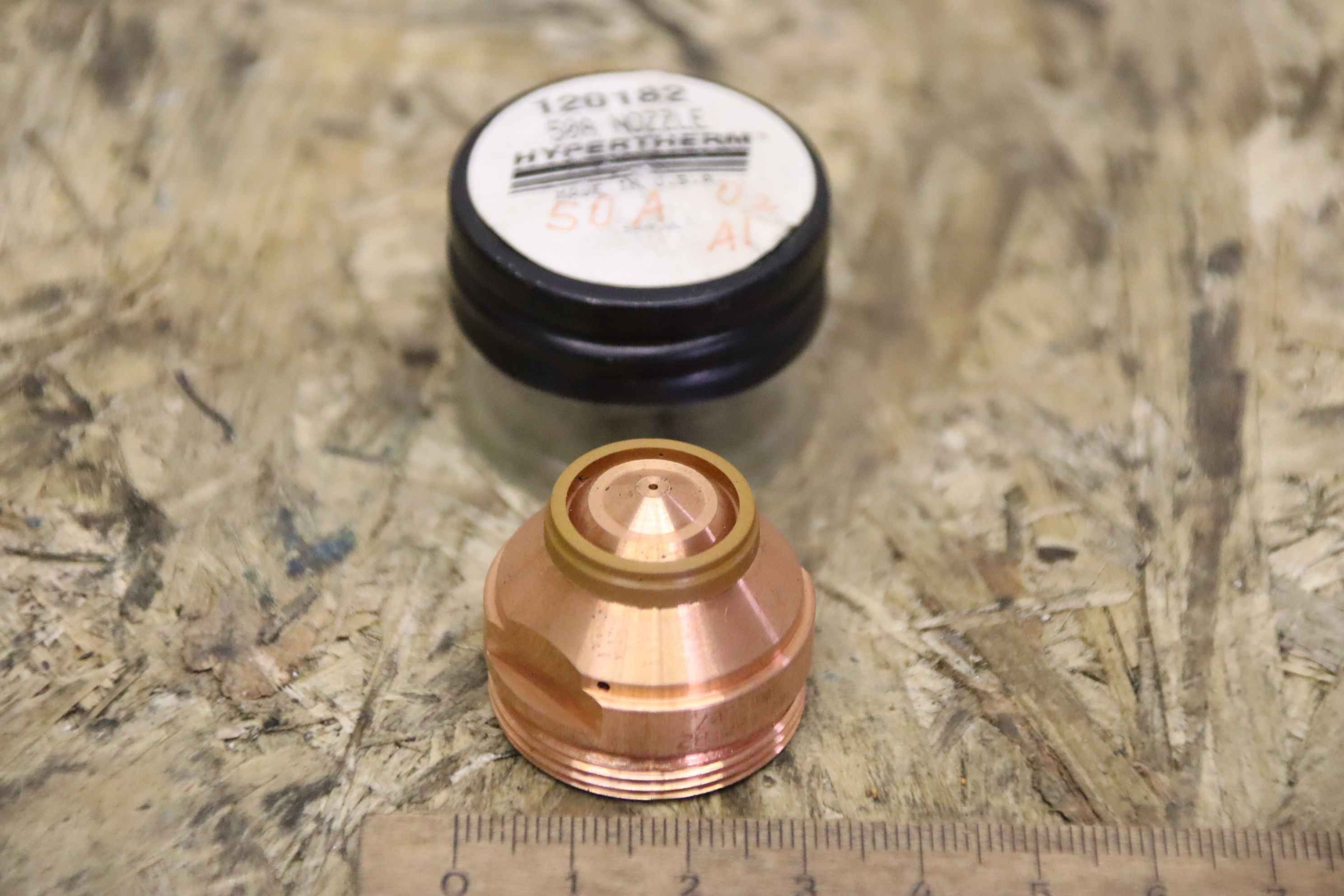 Plasma nozzle, nozzle, electrode, flame cutting machine, plasma torch -Designation: Hypertherm 120182 plasma nozzle -for: Hypertherm HT2000 -Number: 2 available -Price: complete -Total weight: 0.2kg