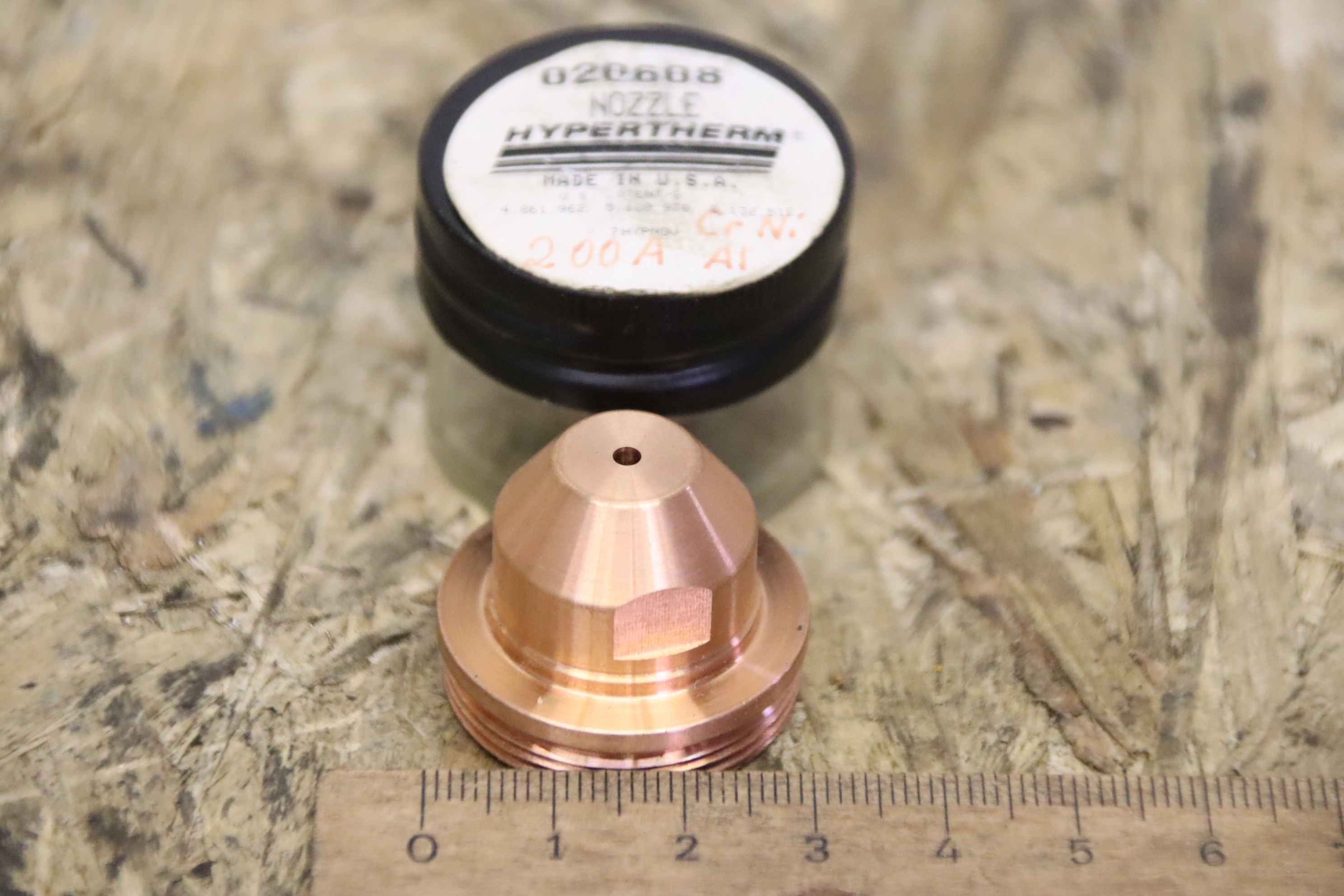 Plasma nozzle, nozzle, electrode, flame cutting machine, plasma torch -Designation: Hypertherm 020608 plasma nozzle -for: Hypertherm HT2000 -Number: 1 piece available -Total weight: 0.1kg
