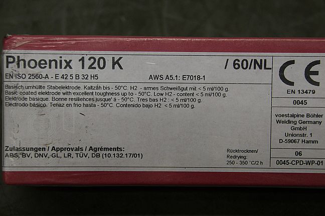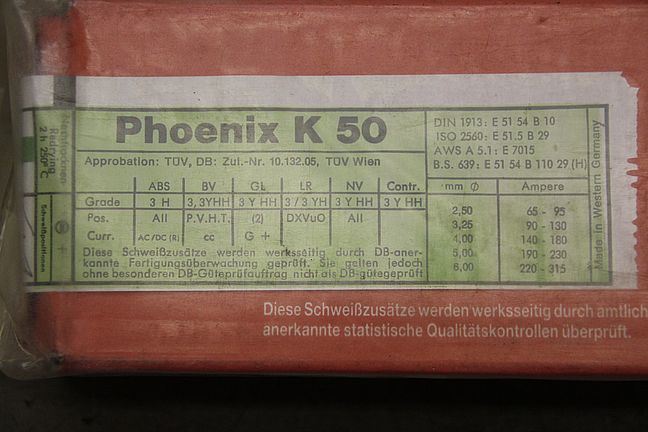 Stick electrodes 3.2 x 350-Type: Phoenix K 50-Price: per package-Number: 6 packages available-Weight per package: 4.5 kg