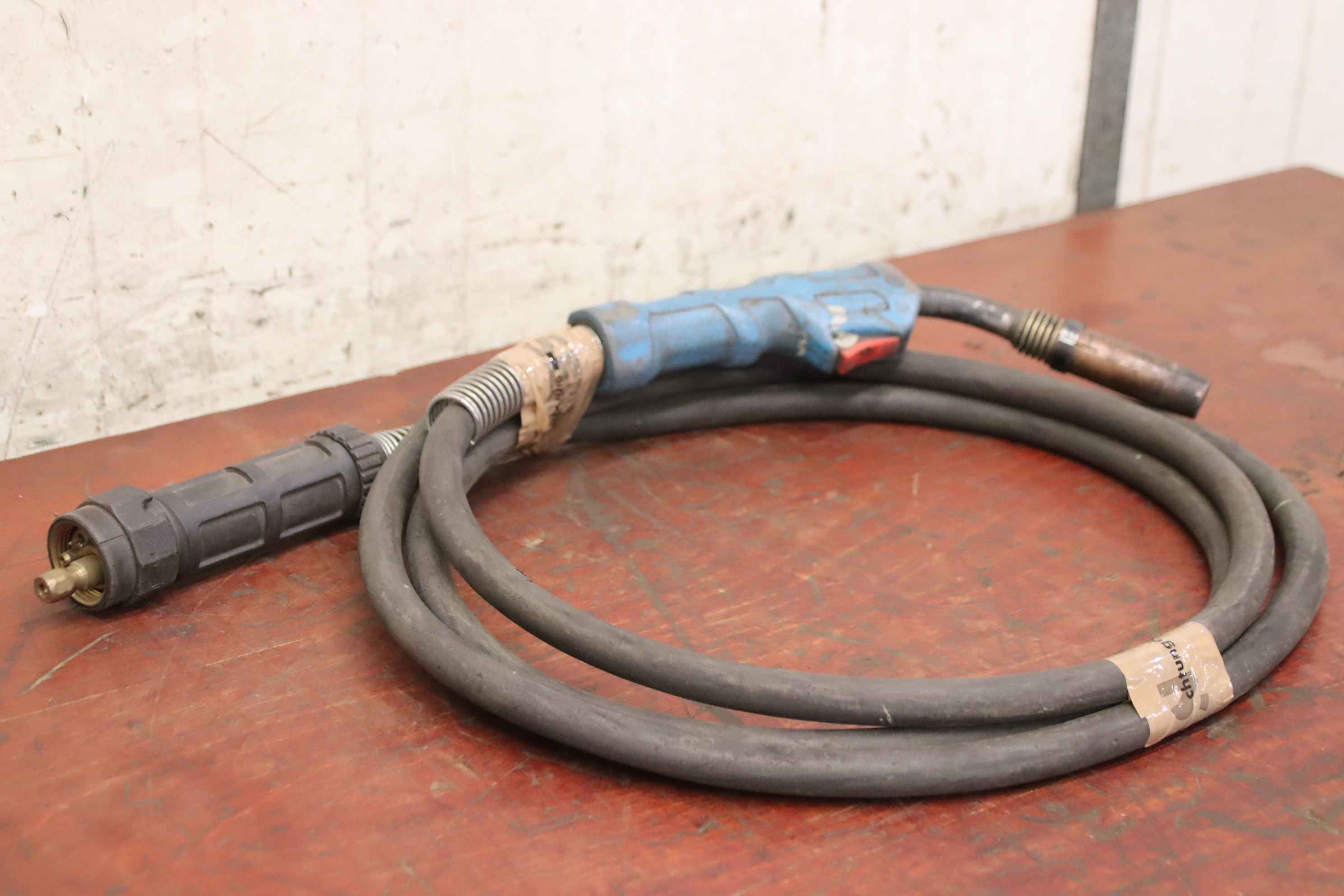 MIG/MAG hose package, MIG/MAG welding torch-Handover: in current condition as viewed-Burner: Burner neck missing, see photo-MIG/MAG hose package: Gas cooled-Length: 3.0 m-Weight: 2.6 kg