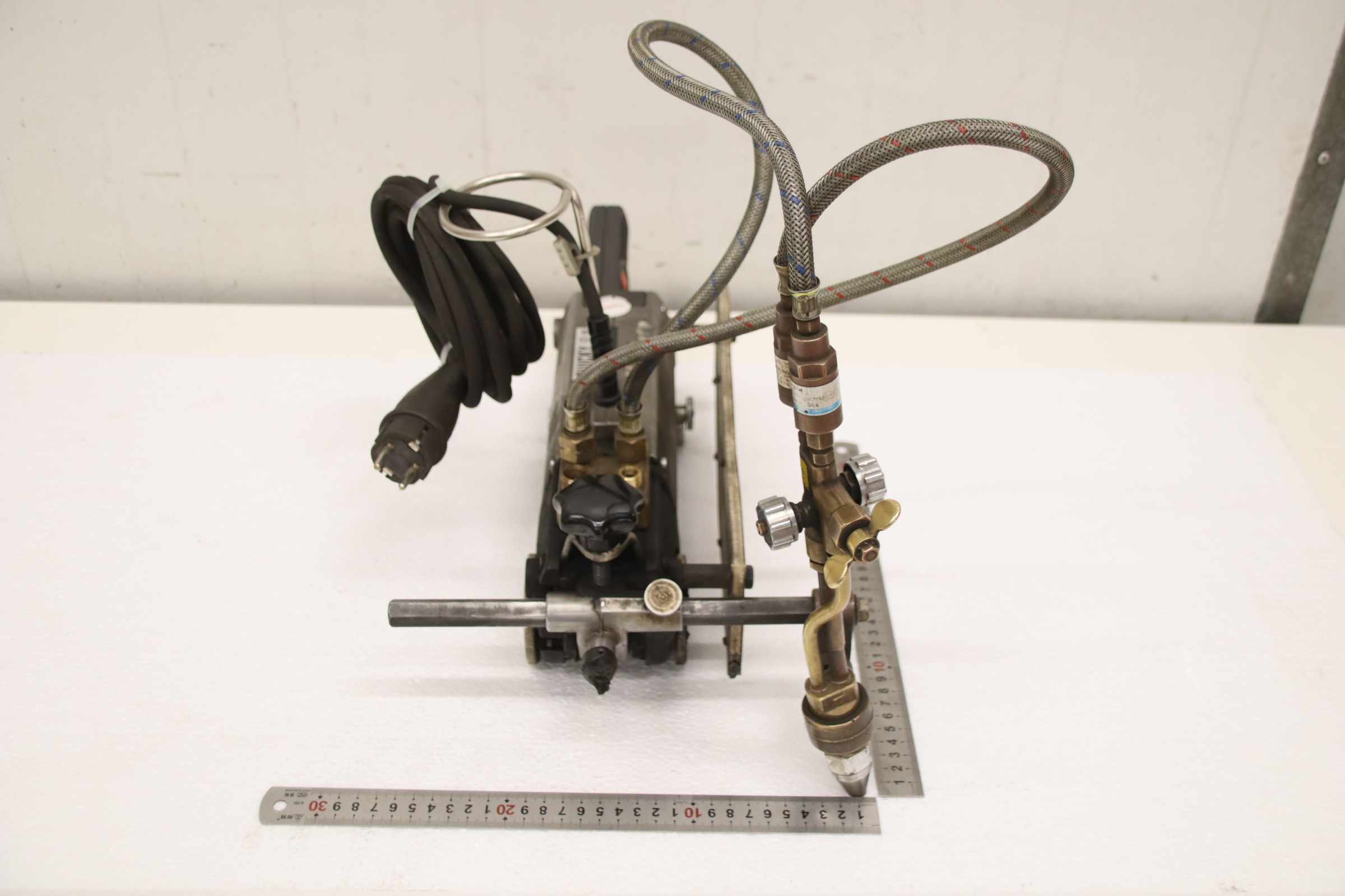 Flame cutting system, torch, oxyfuel cutting system, machine cutting torch, flame cutting machine, cutting torch, cutting machine, oxyfuel cutting machine, gas cutting torch -Manufacturer: Messer Griesheim, machine cutting torch, flame cutting machine -Type: Quicky Electronic -Cutting speed: adjustable -Voltage: 220 V 40 W -Dimensions: 550/280/H300 mm -Weight: 8.4 kg