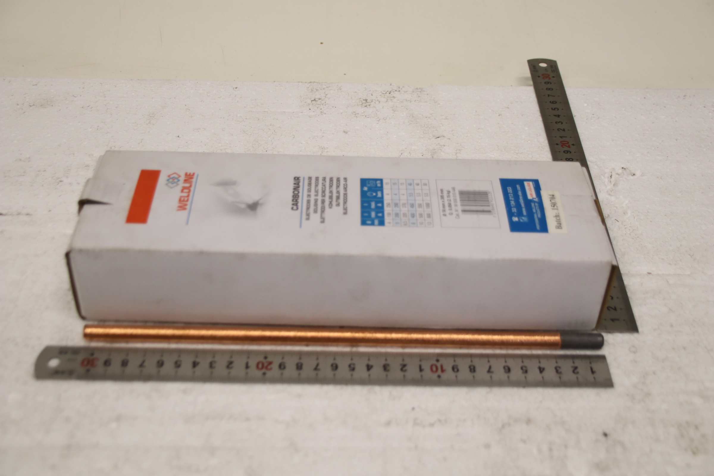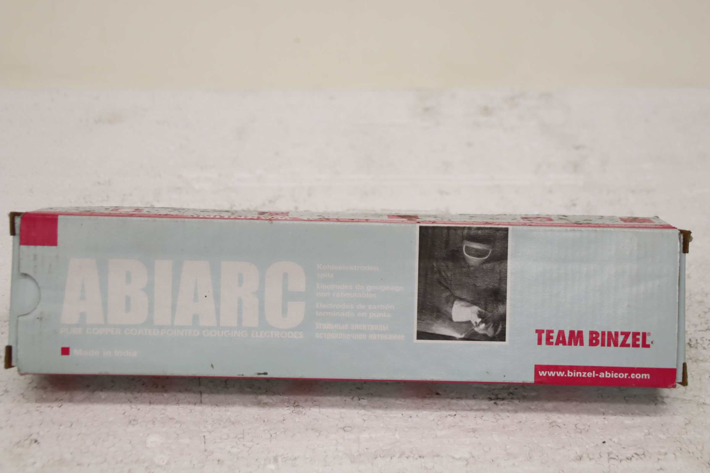 Groove electrode, stick electrodes, carbon joint rods, carbon electrodes -Manufacturer: Binzel-abicor, Carbon electrode package of 50 pieces -Type: Carbonair 10 x 305 -Identification number: W 000 010 446 -Quantity: 9 packages available -Price: per package -Transport dimensions: 320/105/H55 mm -Weight: 2.1 kg/package