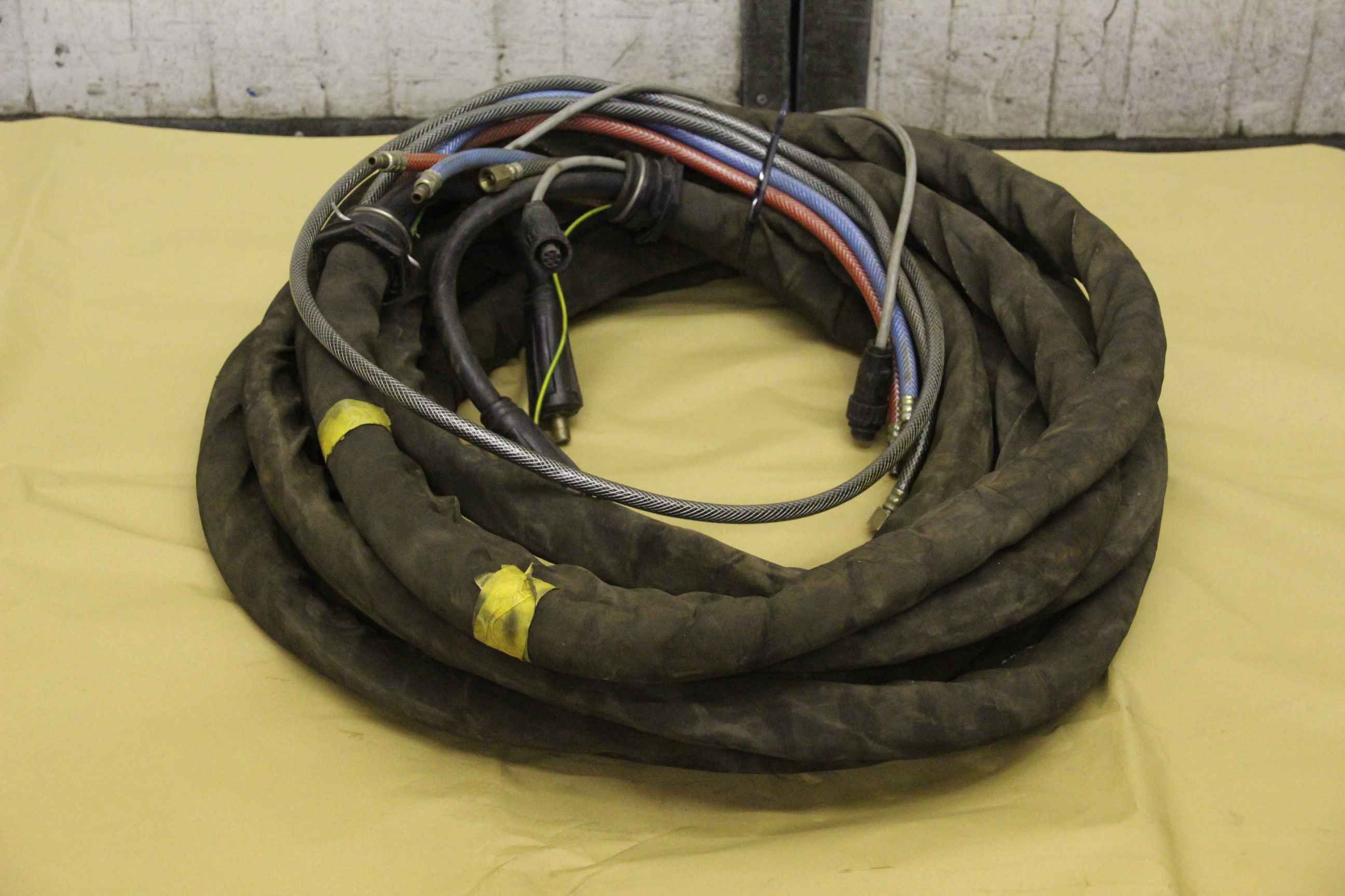 MIG/MAG hose package, MIG/MAG welding torch, welding robot hose package, intermediate hose package, robot hose package, welding fume extraction-MIG/MAG hose package: with welding fume extraction-Length: 4.35 m-water cooled-Transport dimensions: 640/540/H120 mm-Weight: 4.8 kg