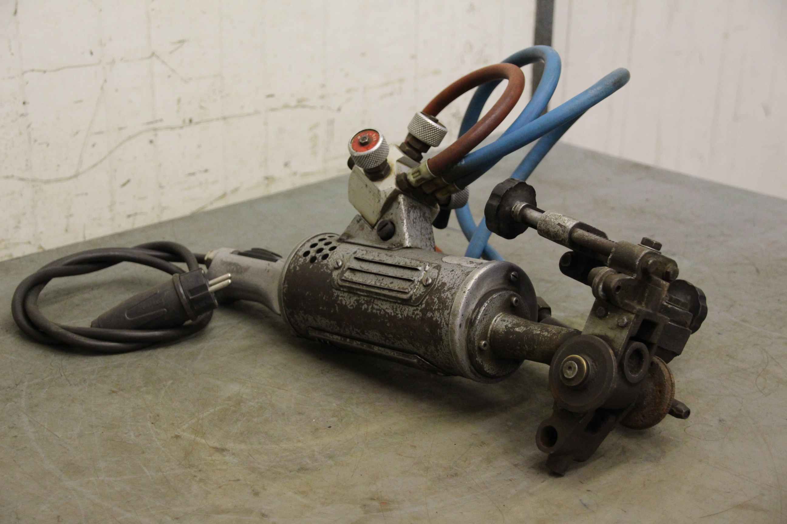 Edge milling machine, edge milling device, chamfering machine, mobile milling machine, weld edge former, weld edge former, weld preparation, weld edge forming machine, deburring device, deburring machine -Edge milling machine: with sliding carriage, maximum travel 500 mm -Depth adjustment: 0 - 6 mm -Drive: 0.5 kW -Adjustable speed: 1200 - 8000 rpm -Angle: 45° -Accessories: Widia milling head, diamond grinding wheel, vacuum cleaner -Dimensions: 490/870/H1150 mm -Weight: 106 kg