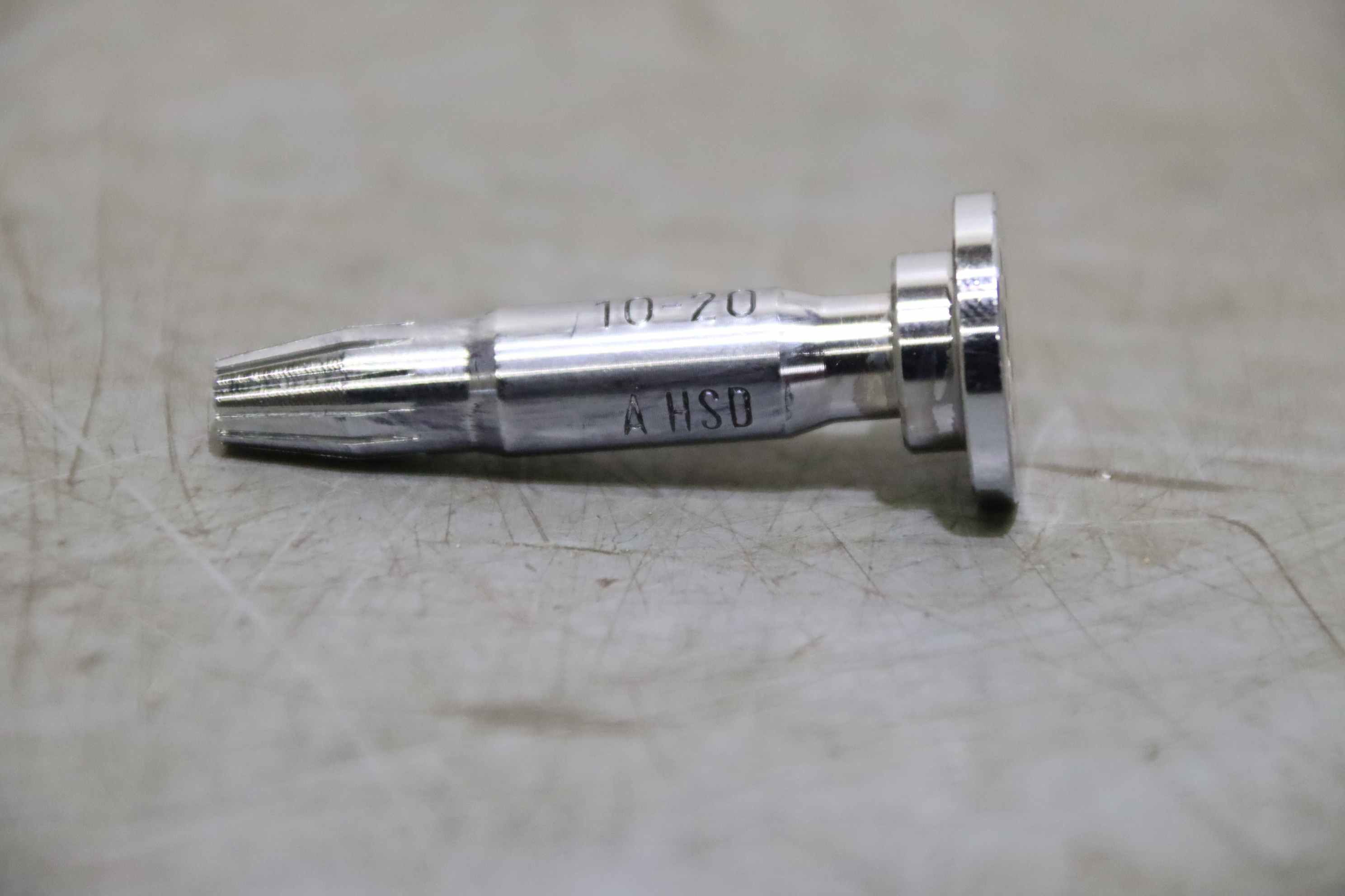 Torch nozzles, cutting nozzles, flame cutting system, torches, oxyfuel cutting system -Designation: HSD cutting nozzle 10-20 mm acetylene 6 bar -Cutting range: 10 to 20 mm -Pressure: 5 bars -Diameter: 19mm -Length: 47mm -Number: 24 pieces available -Total Cost -Total weight: 1.2kg