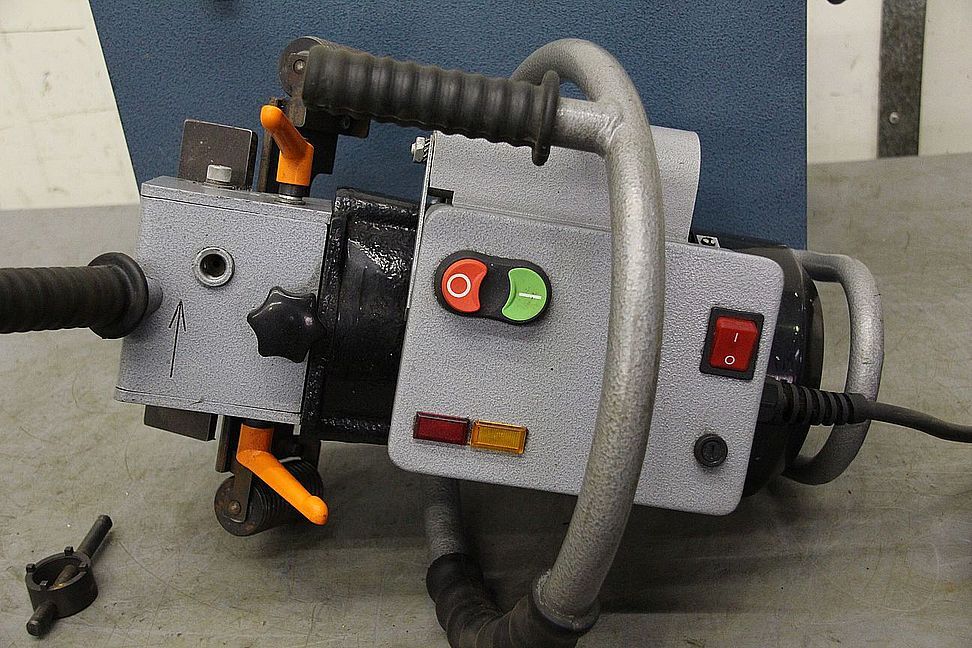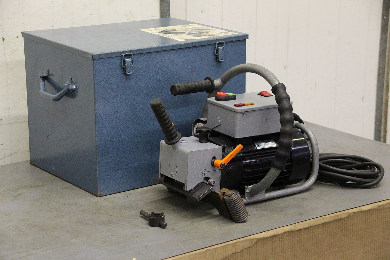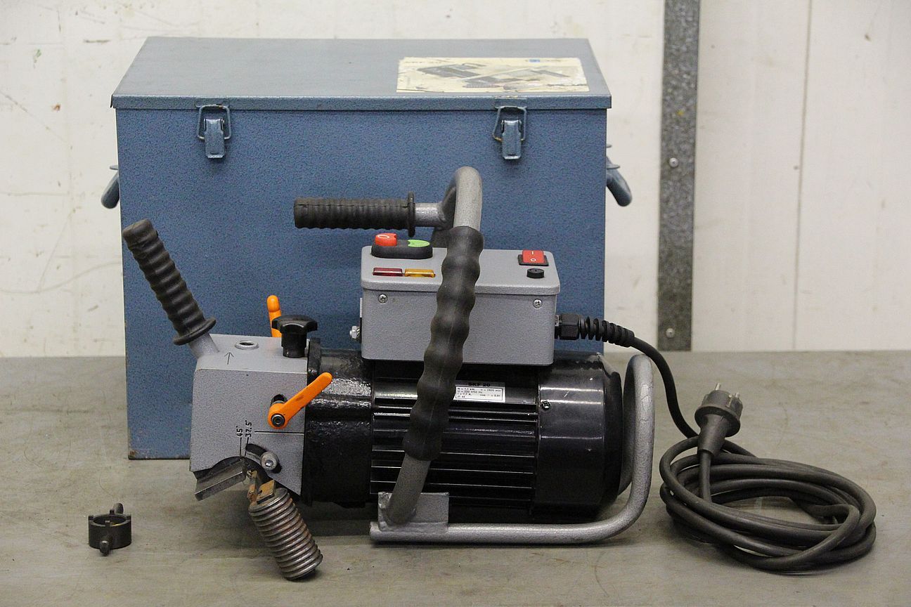 Welding edge former, welding edge former, weld seam preparation, welding edge forming machine, edge milling device, edge milling machine, mobile milling machine -Bevel length: max. 20 mm -Dimensions box: 460/360/H355 mm -Weight: 24 kg