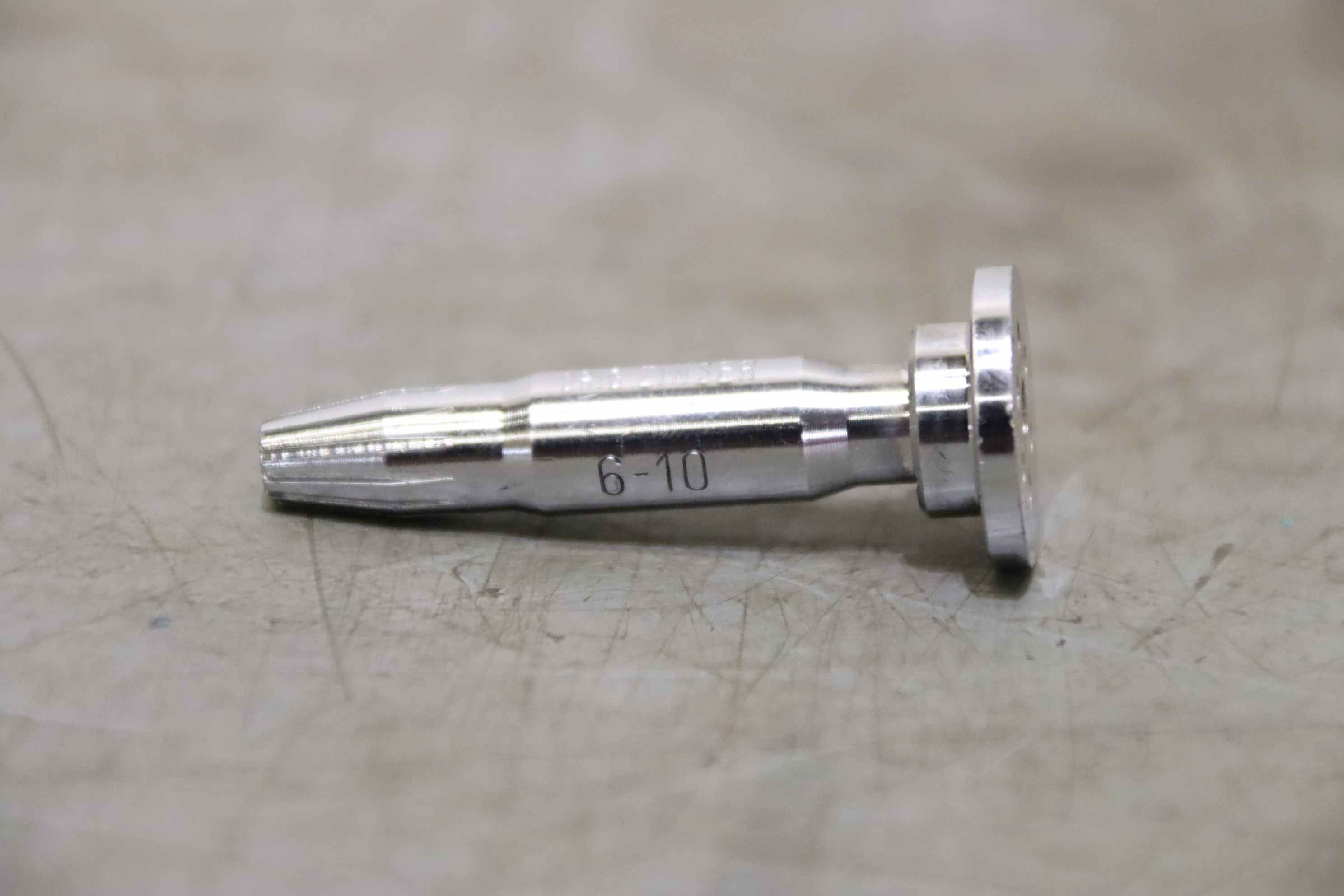 Burner nozzles, cutting nozzles, flame cutting system, burner, oxyfuel cutting system -Designation: HSD cutting nozzle 6 - 10 mm Acetylene 6 bar -Cutting range: 6 - 10 mm -Pressure: 5 bar -Diameter: 19 mm -Length: 47 mm -Quantity: 22 pieces available -Price/Sale: complete -Total weight: 1.1 kg