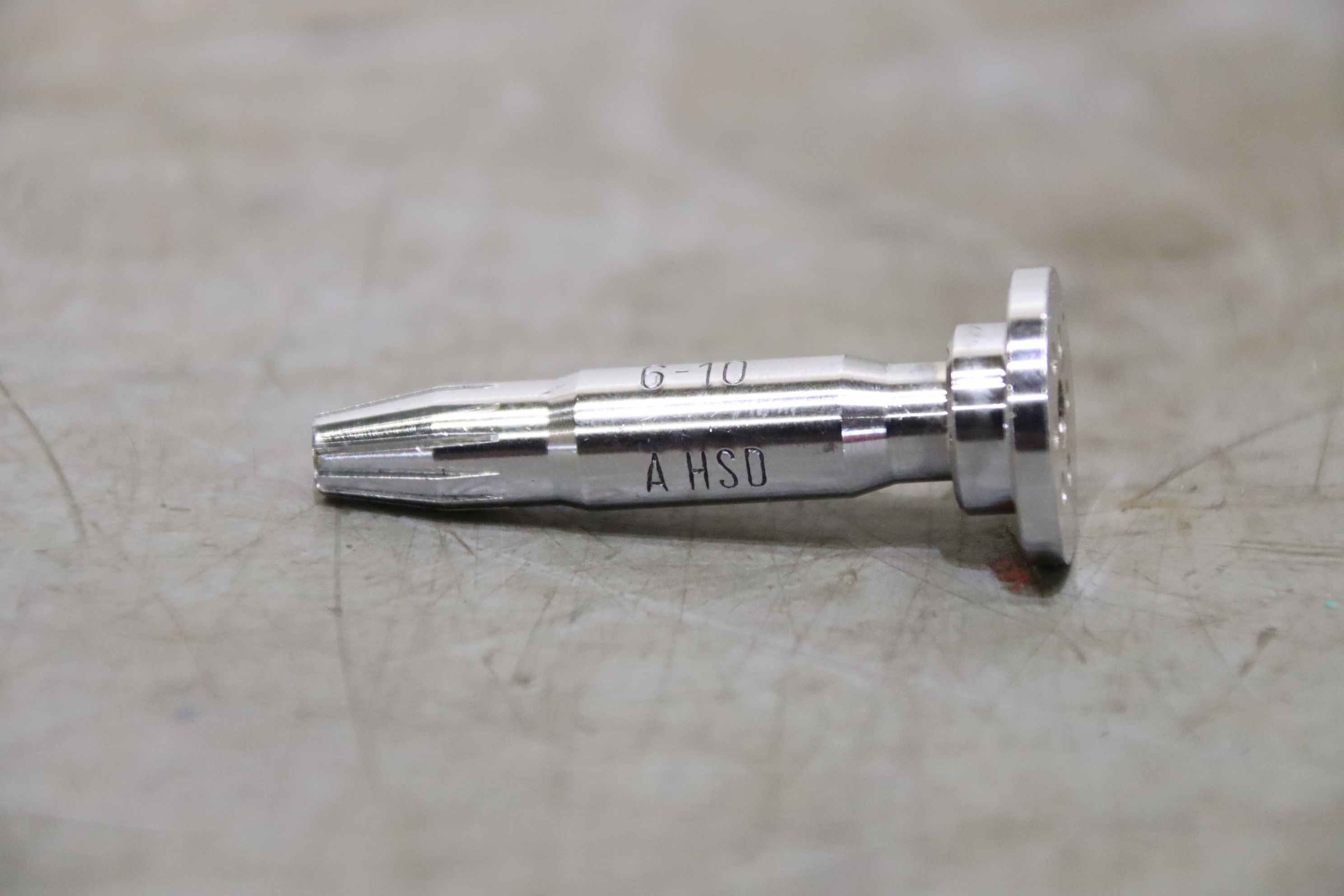 Torch nozzles, cutting nozzles, flame cutting system, torches, oxyfuel cutting system -Designation: HSD cutting nozzle 6 - 10 mm acetylene 6 bar -Cutting range: 6 - 10 mm -Pressure: 4 bars -Diameter: 19mm -Length: 47mm -Number: 43 pieces available -Total Cost -Total weight: 2.15 kg