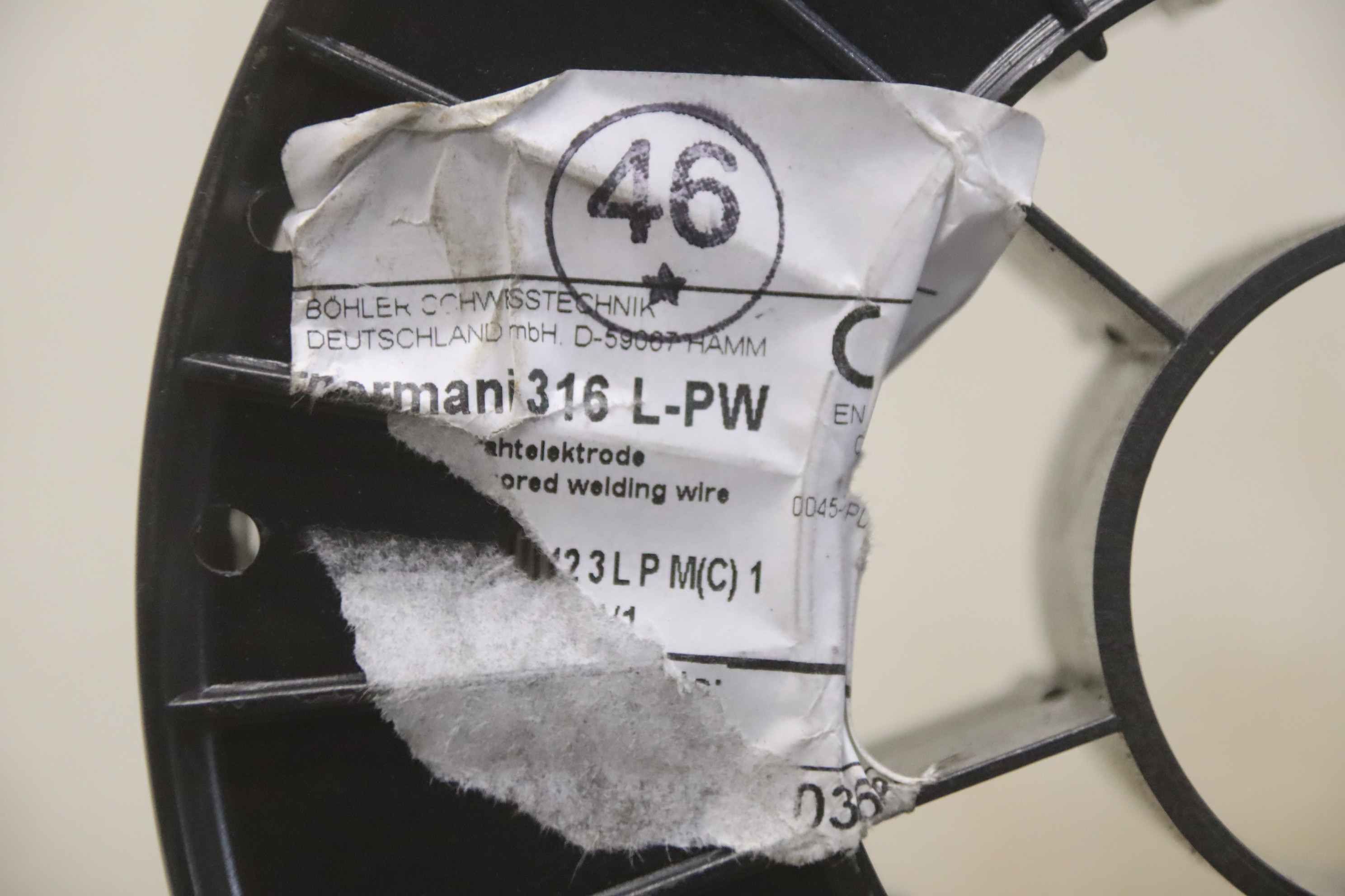 Wire electrode, welding wire, welding wire, cored wire-Manufacturer: Böhler, started roll of protective gas wire electrode-Type: Thermanit 316 L-PW Ø 1.2 mm-Dimensions: Ø 200/55 mm-Weight roll: 4.0 kg