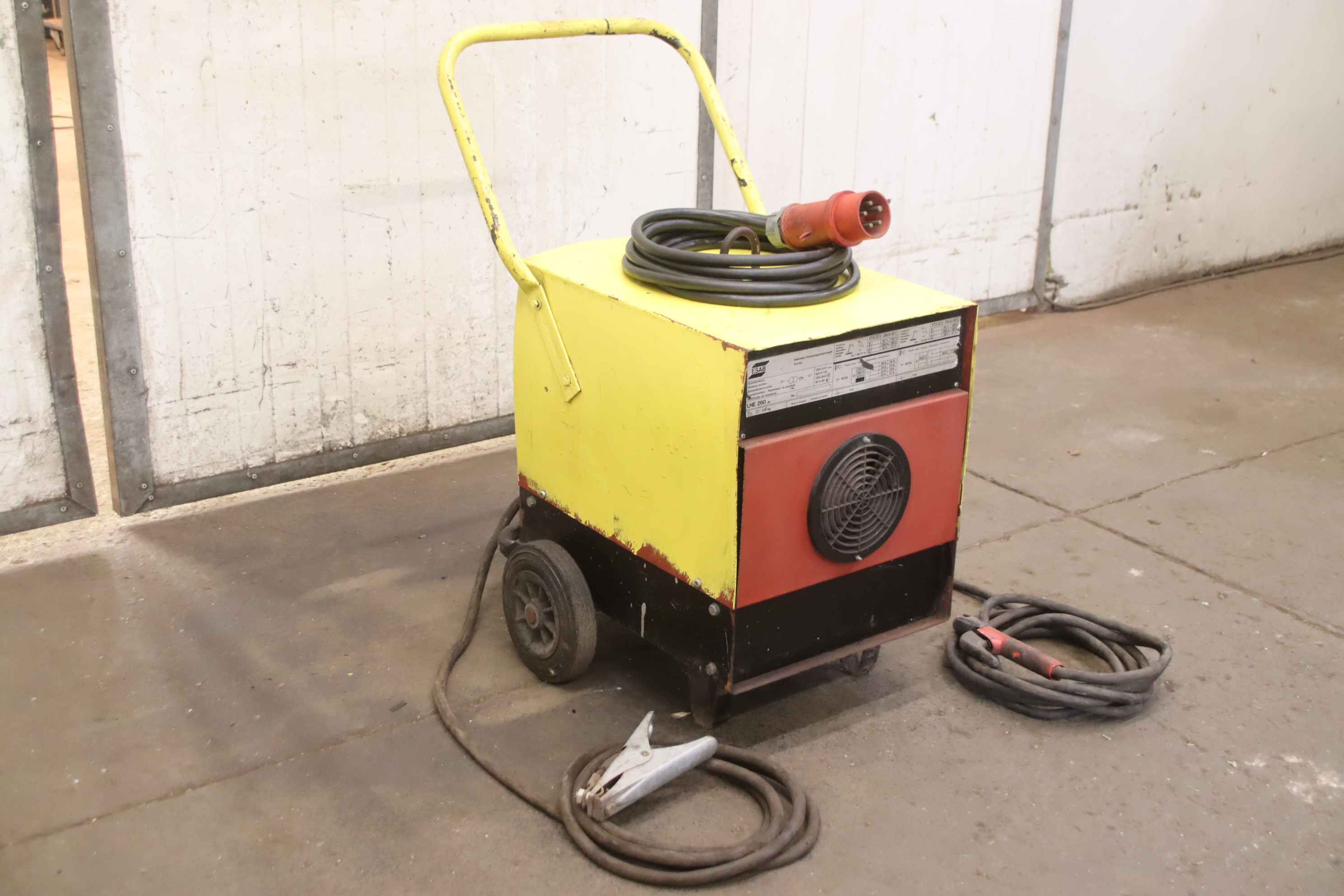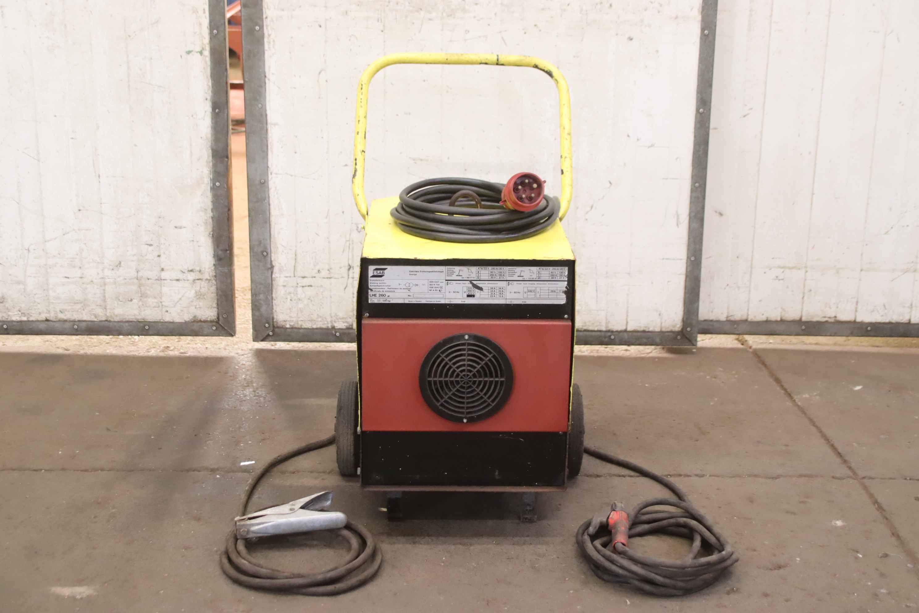 welding rectifier, electrode welding device, electrode welding machine, electrode welding rectifier-Manufacturer: ESAB, welding rectifier type LHE 260-Welding power: max. 260 A-Welding cable with electrode clamp-ground cable-Dimensions: 710/480/H865 mm-Weight: 119 kg