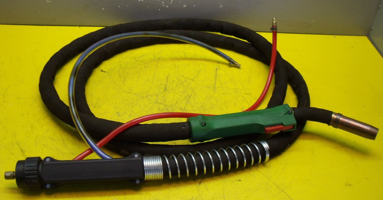 MIG/MAG hose package, MIG/MAG welding torch, welding robot hose package, intermediate hose package, robot hose package, welding fume extraction-MIG/MAG hose package: with welding fume extraction-Length: 4.25 m-water cooled-Transport dimensions: 600/500/H130 mm-Weight: 4.8 kg