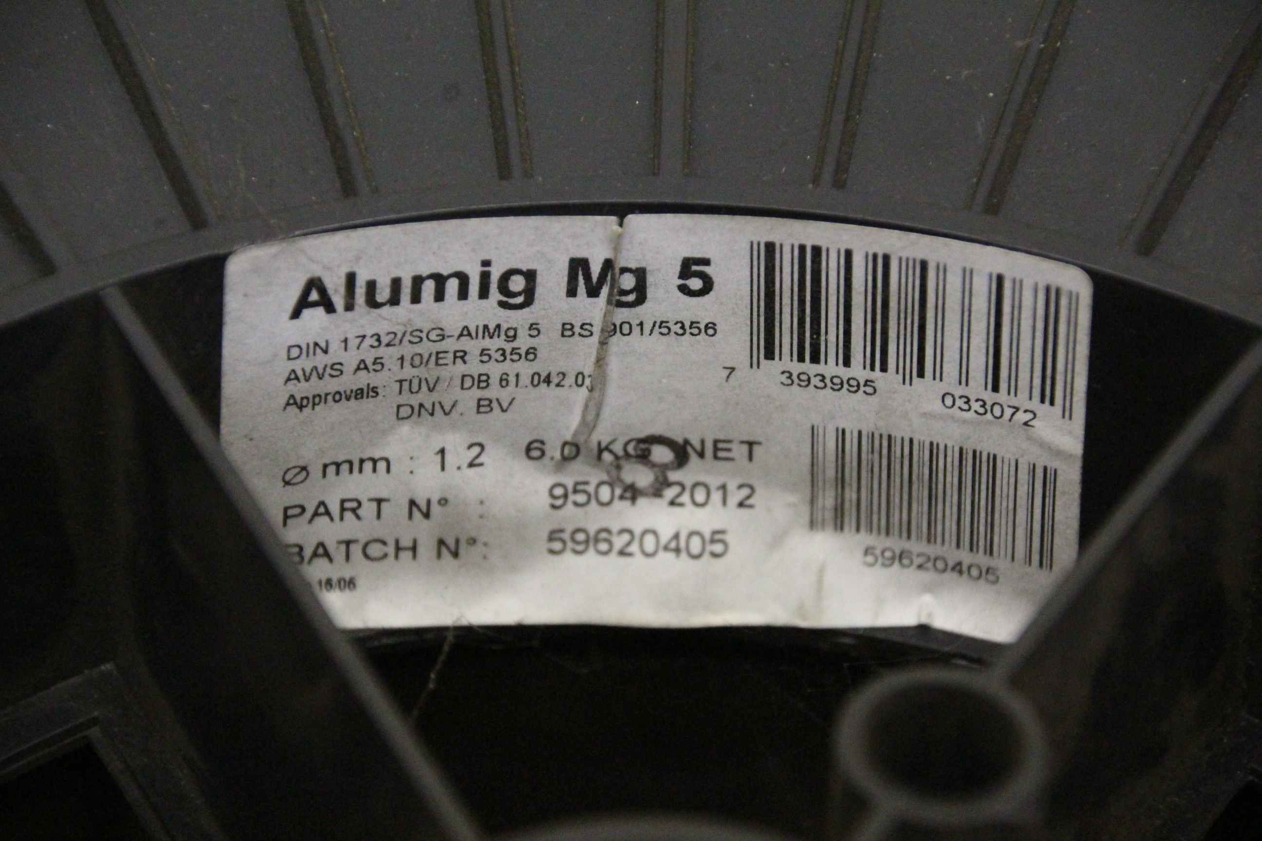 wire electrode, welding wire, welding wire -Welding wire: Alumig Mg 5 -DIN: 1732/SG-AlMg 5 -O: 1.20 mm -Dimension: O 300/100 mm -Weight roll: 6 kg