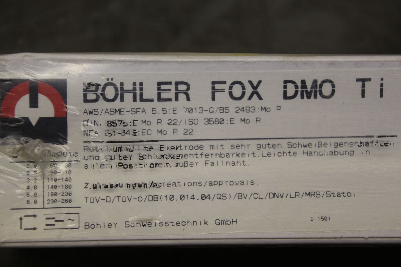 Stick electrodes 2.5 x 250-Type: FOX DMO Ti-Price: per package-Number: 2 packages available-Weight per package: 3.3 kg