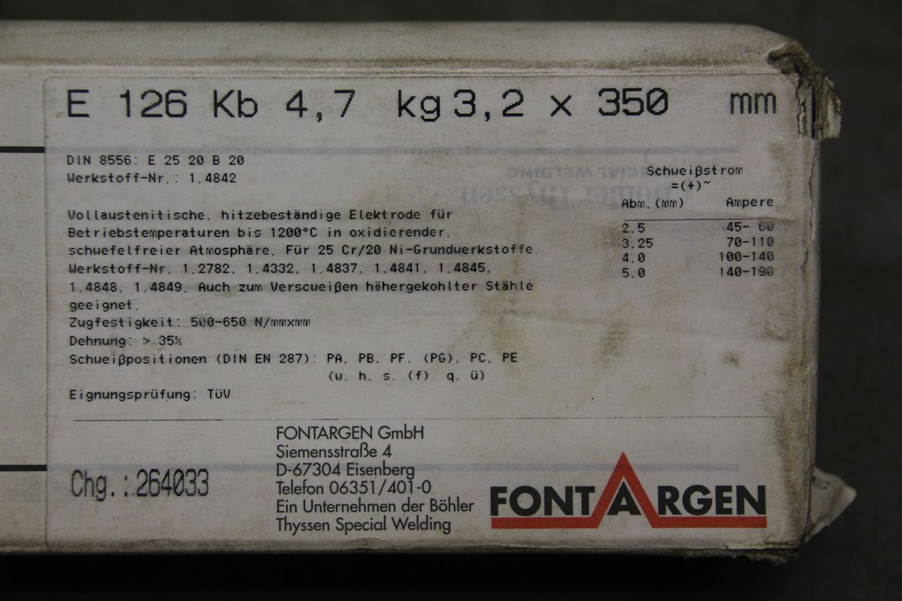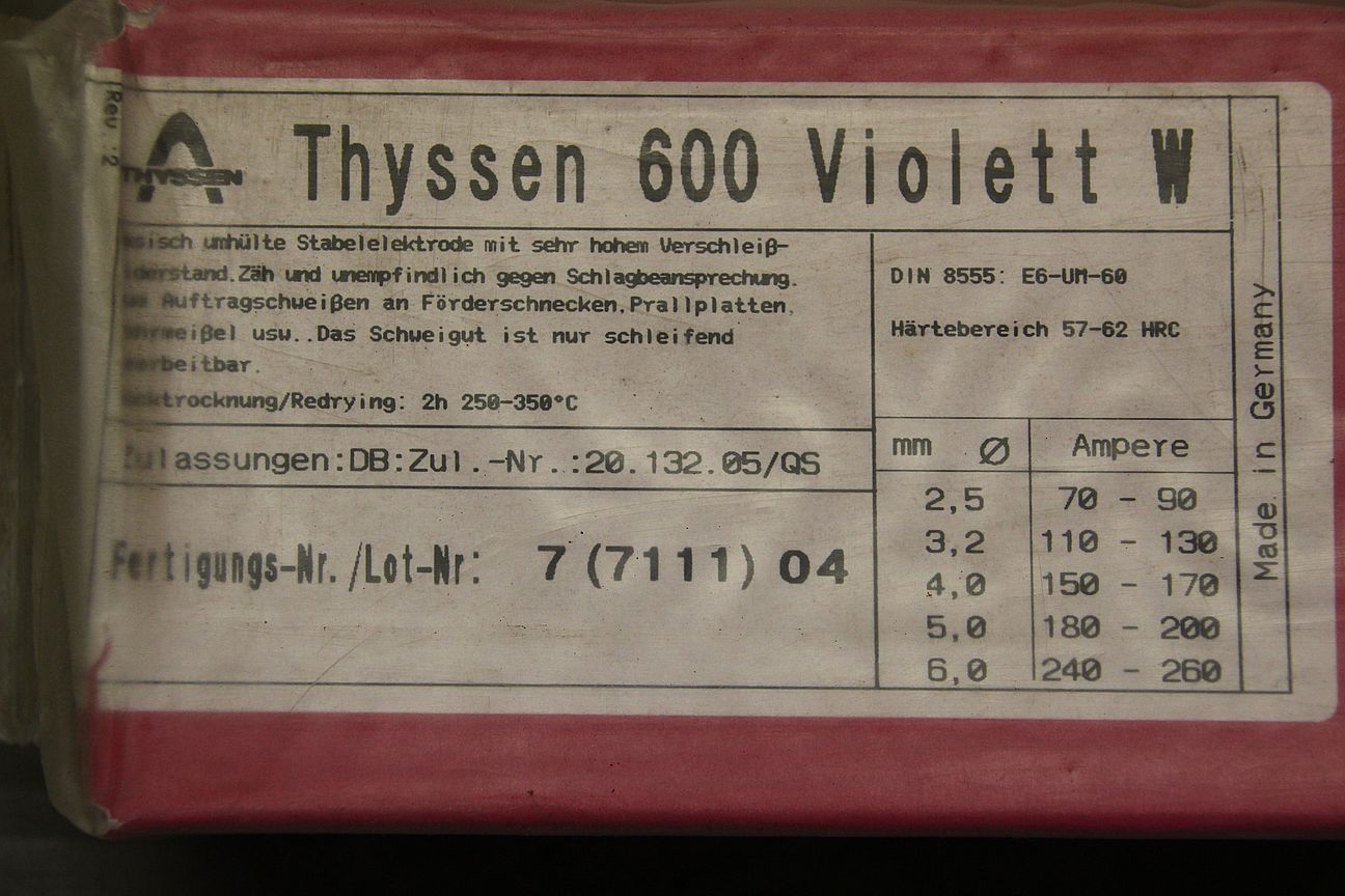 Stick electrodes 4.0 x 450 -Type: Thyssen 600 Violet W -Price: per package -Number: 14 packages available -Weight per package: 6.2 kg