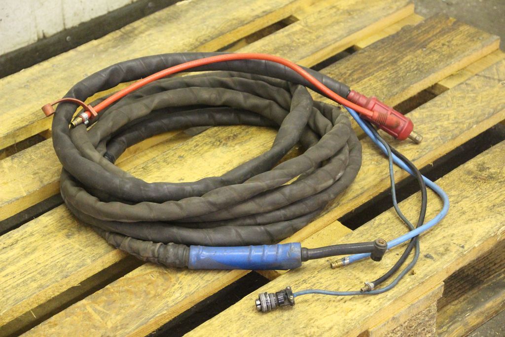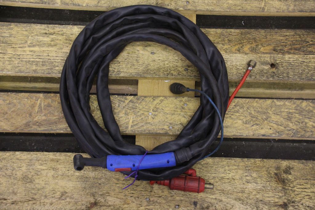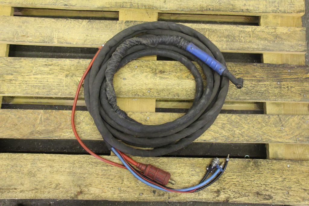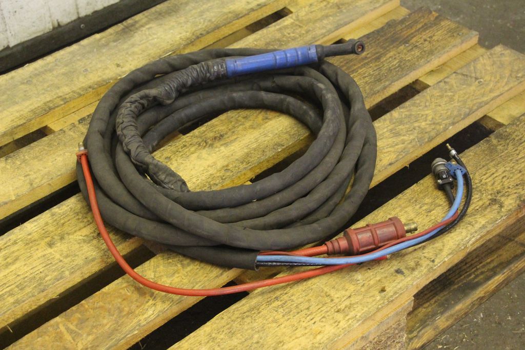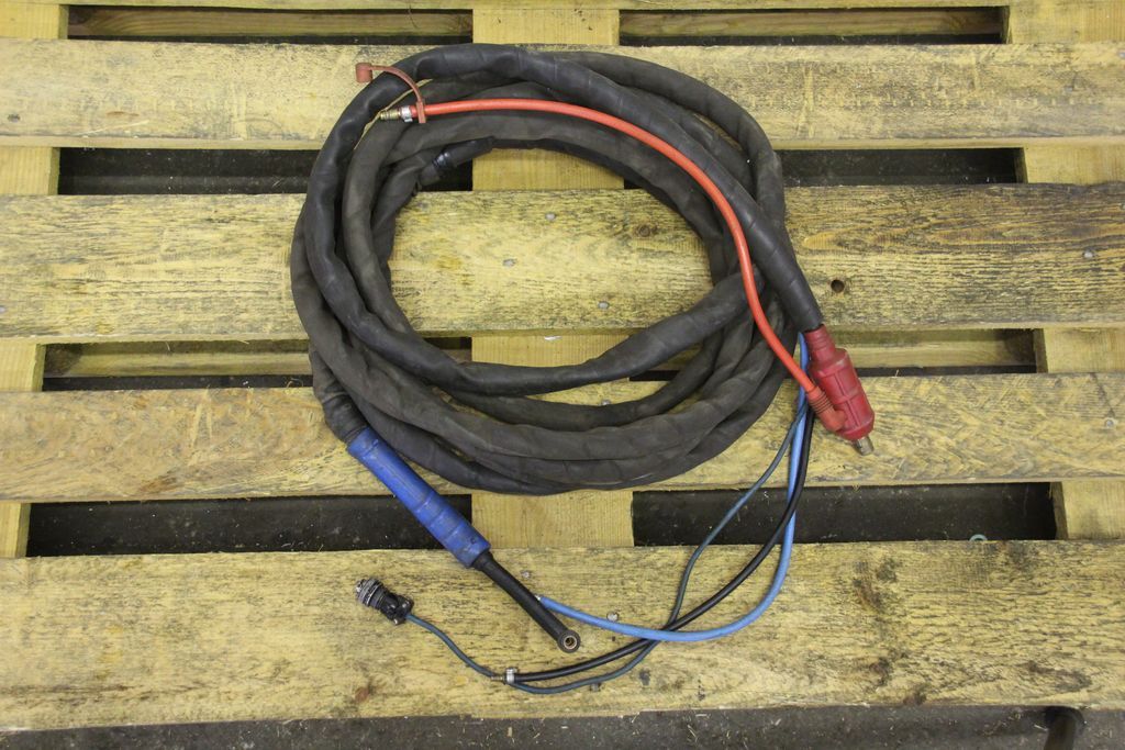 TIG hose package, welding torch, manual welding torch, TIG torch-with: torch body-Length: 7.8 m-Tuchel connector: 5 pin-Water cooled-Weight: 3.5 kg