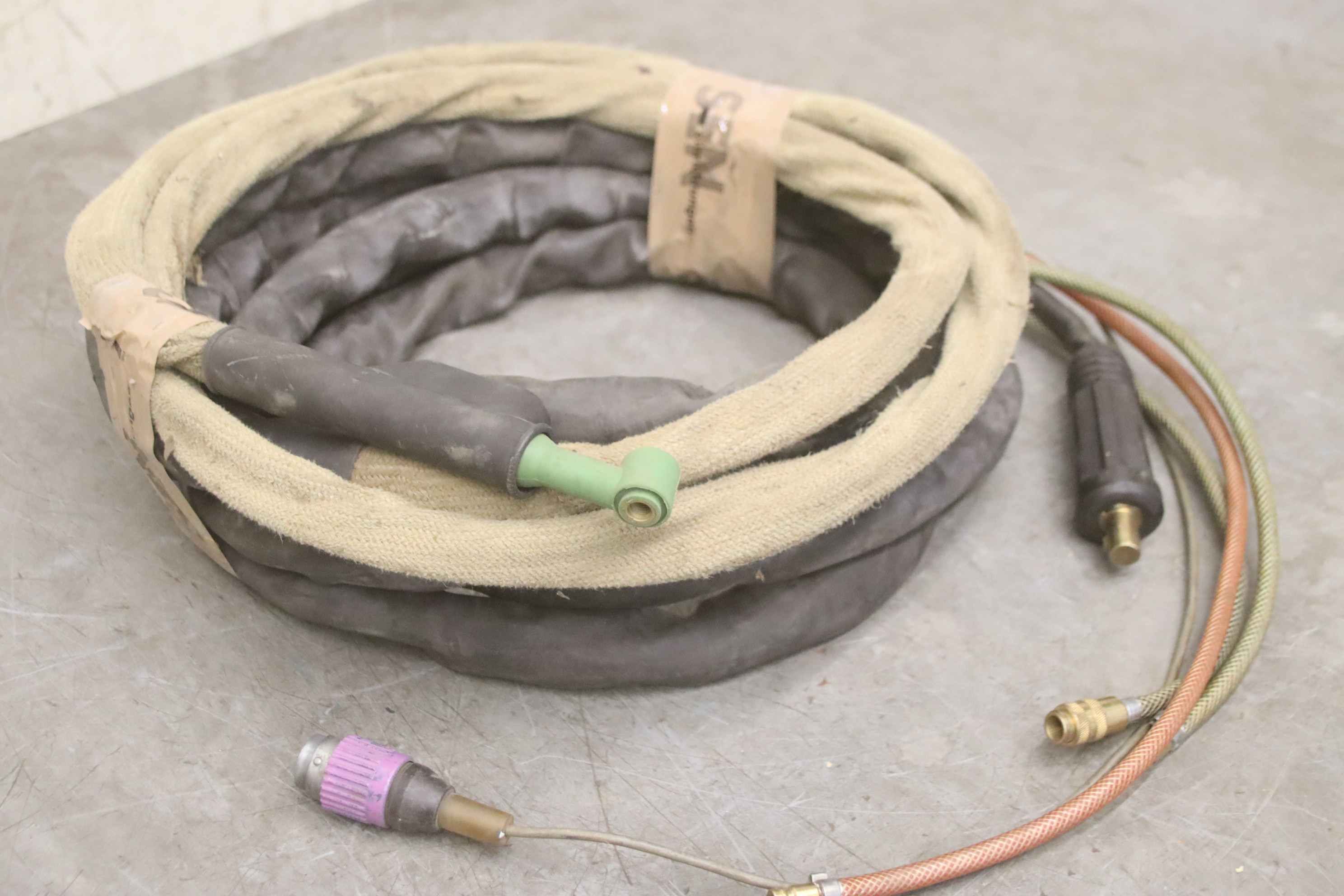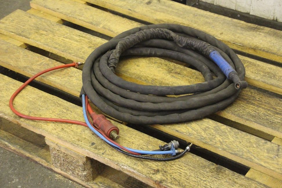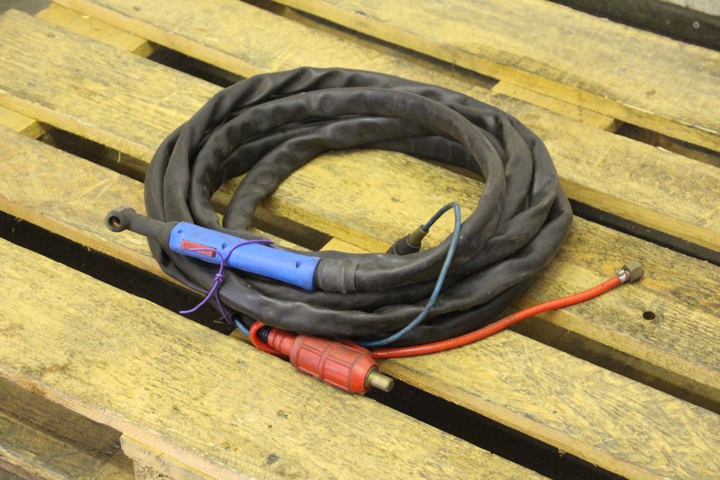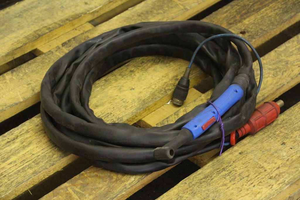 TIG hose package, welding torch, manual welding torch, TIG torch-with: torch body-Length: 7.8 m-Tuchel connector: 5 pin-Water cooled-Weight: 3.5 kg