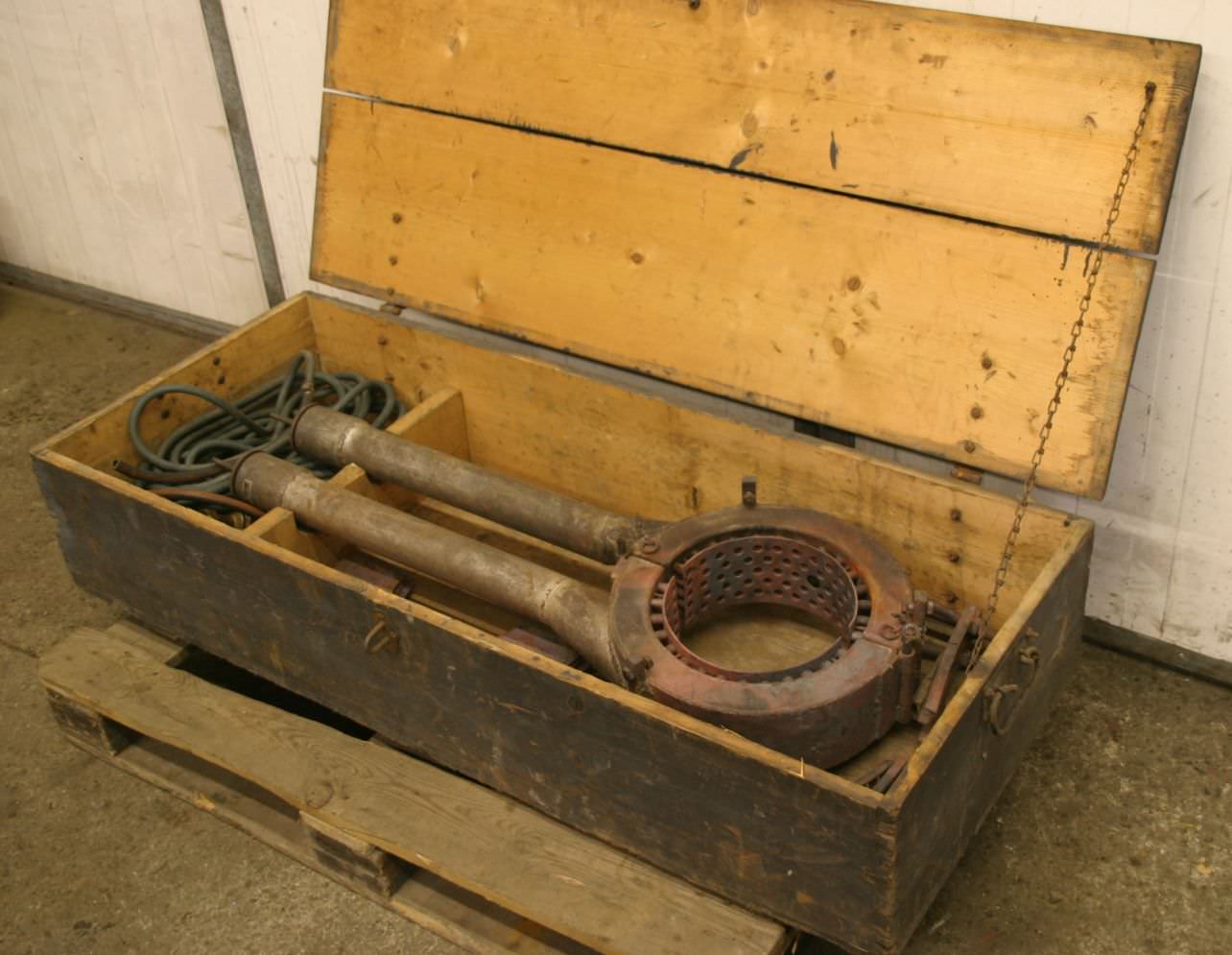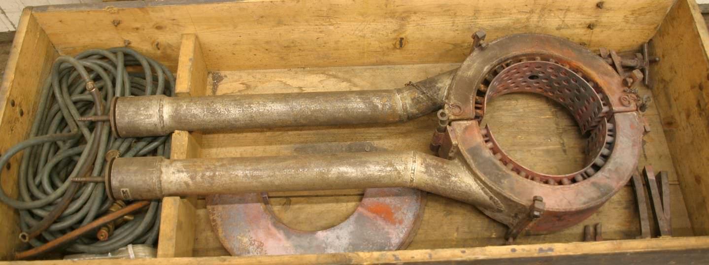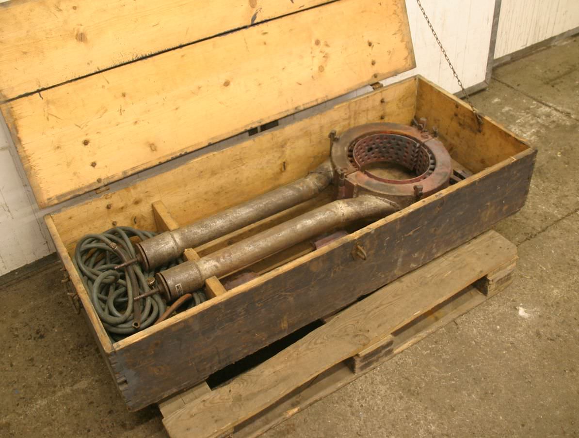Pipe heating device, pipe burner, pipeline construction burner -Max. diameter: 250 mm -Burner for steel pipeline construction -Propane -Transport crate -Dimensions: 600/1400/H330 mm -Weight: 90 kg