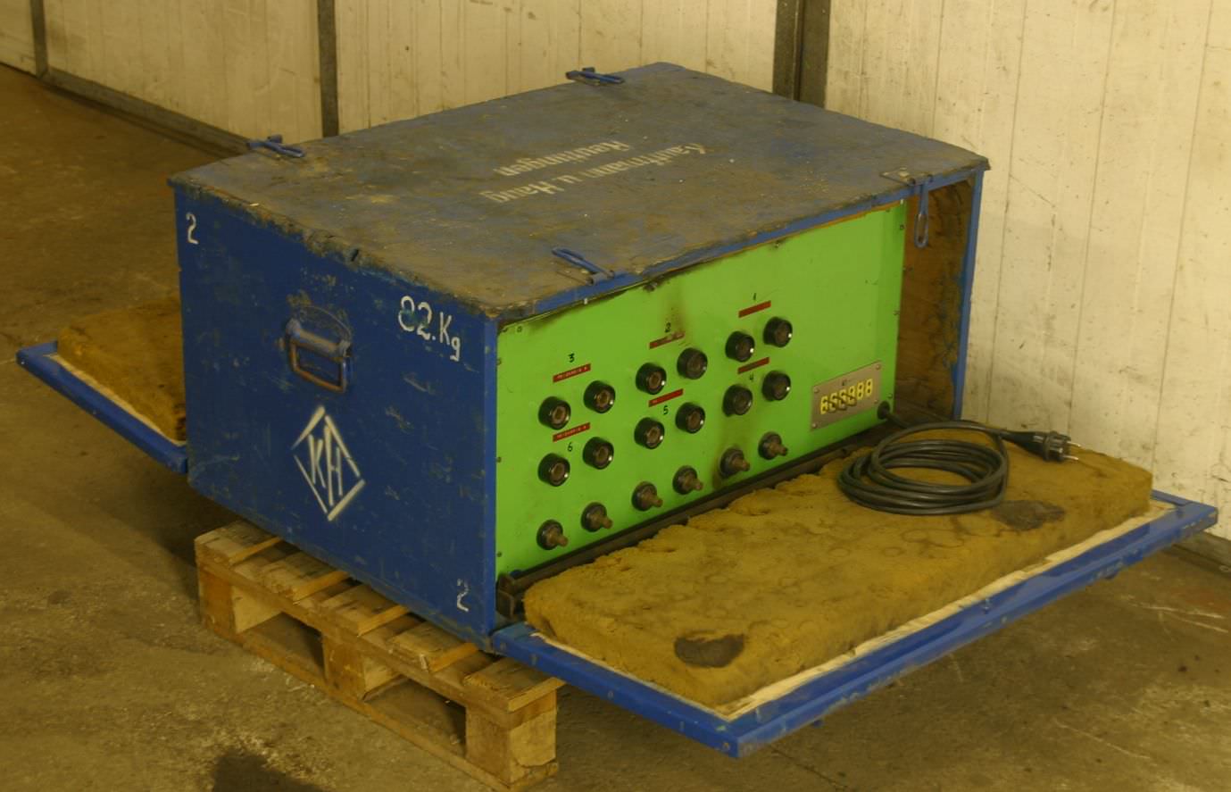 Heating elements control unit -for: heating elements -Connection: from the electrode welding machine -Regulator and recorder -Handover in its current condition as inspected -in transport crate -Weight: 95 kg