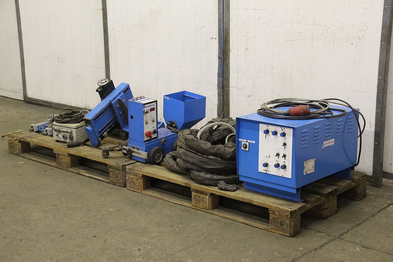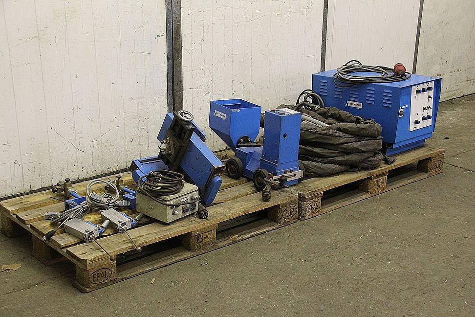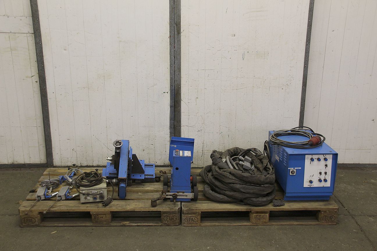 Submerged arc welding device, welding accessories, forming gas welding device, longitudinal carriage, chassis, welding carriage, longitudinal carriage, welding machine, welding carriage, inert gas welding device, longitudinal seam welding system, longitudinal seam welding machine, longitudinal seam welding device, rail runner-Submerged arc welding machine without: power source-Submerged arc welding machine type: Minisaf 02-Control box SUBARC 3-Intermediate hose package-Equipment-Dimensions: 1200/800/H500 mm-Weight: 215 kg