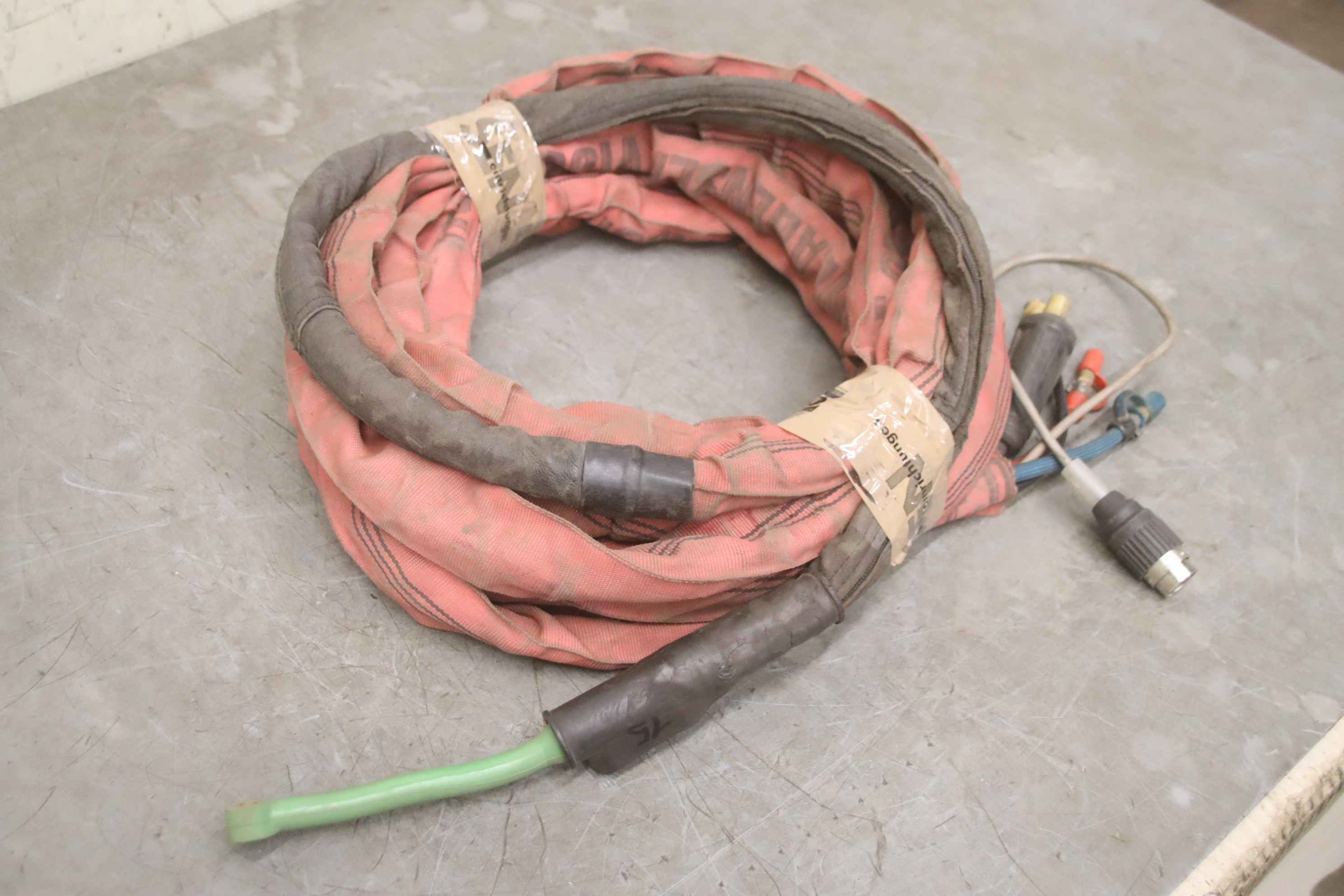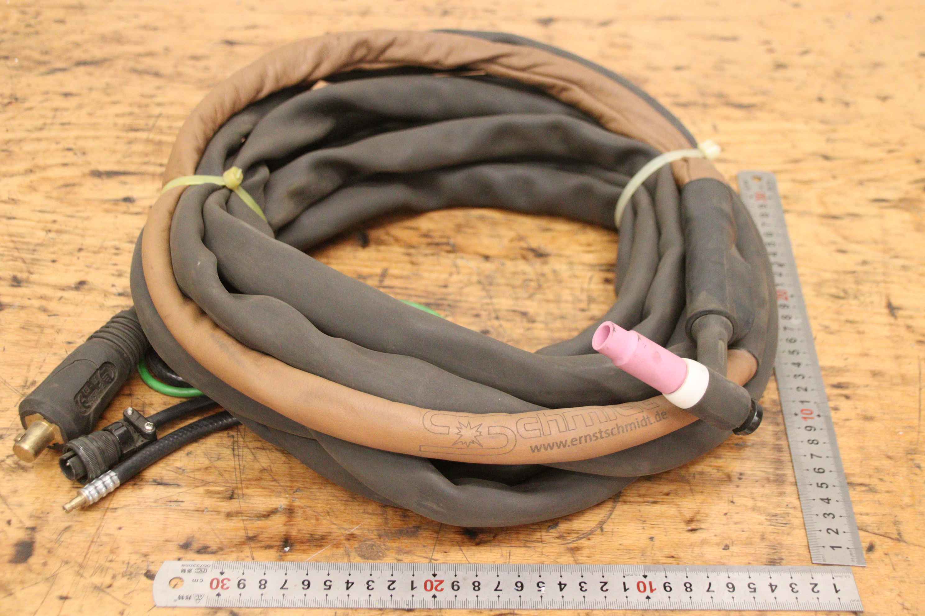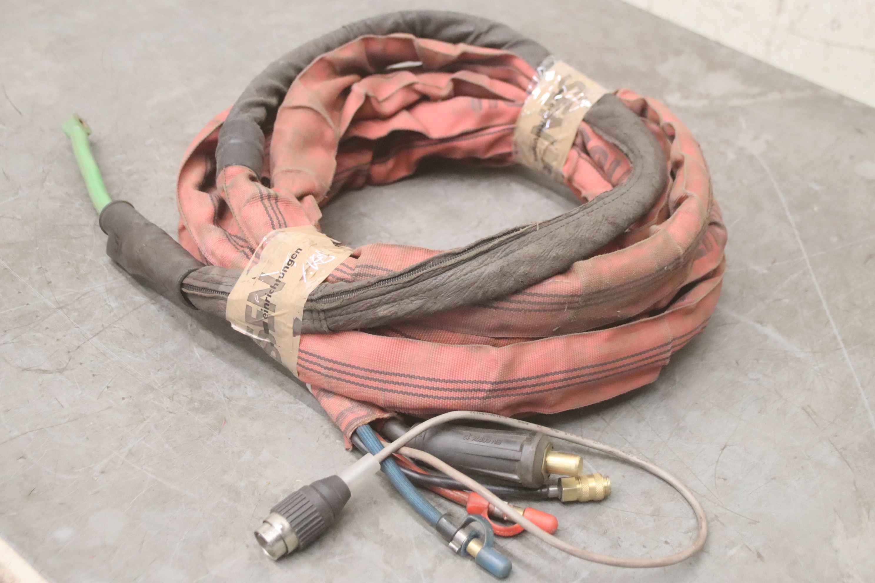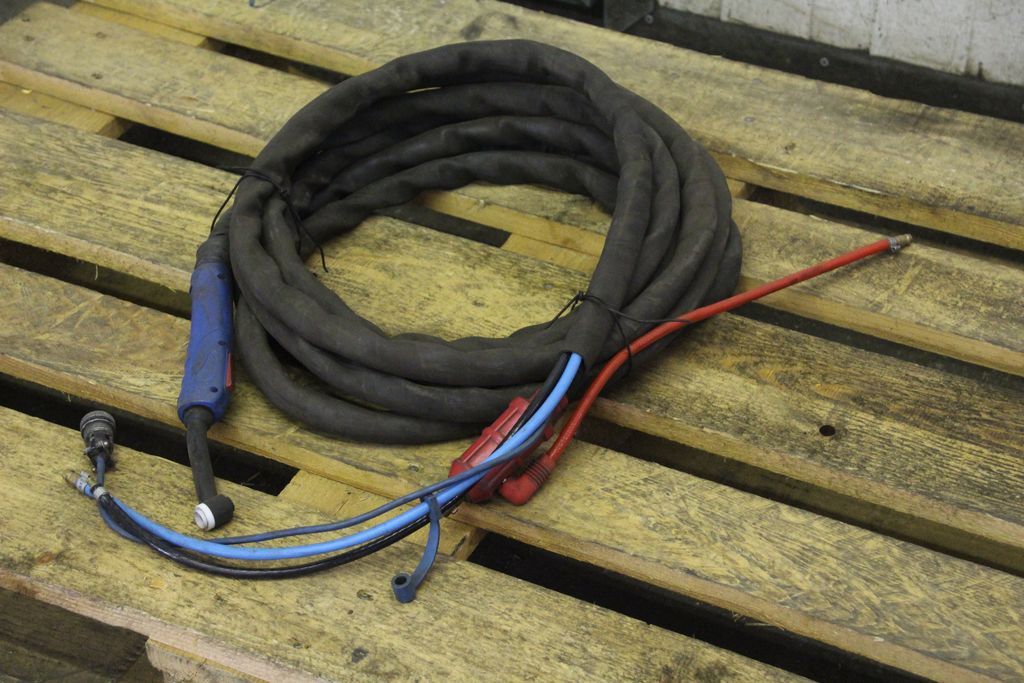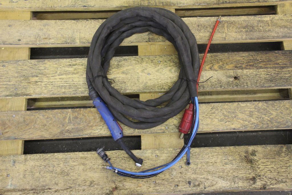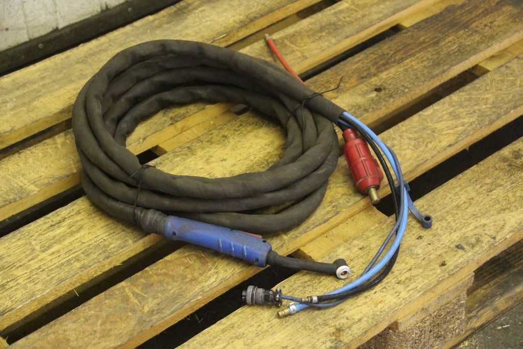 TIG hose package, welding torch, manual welding torch, TIG torch-with: torch body-Length: 7.7 m-Tuchel connector: 5 pin-Water cooled-Weight: 3.2 kg