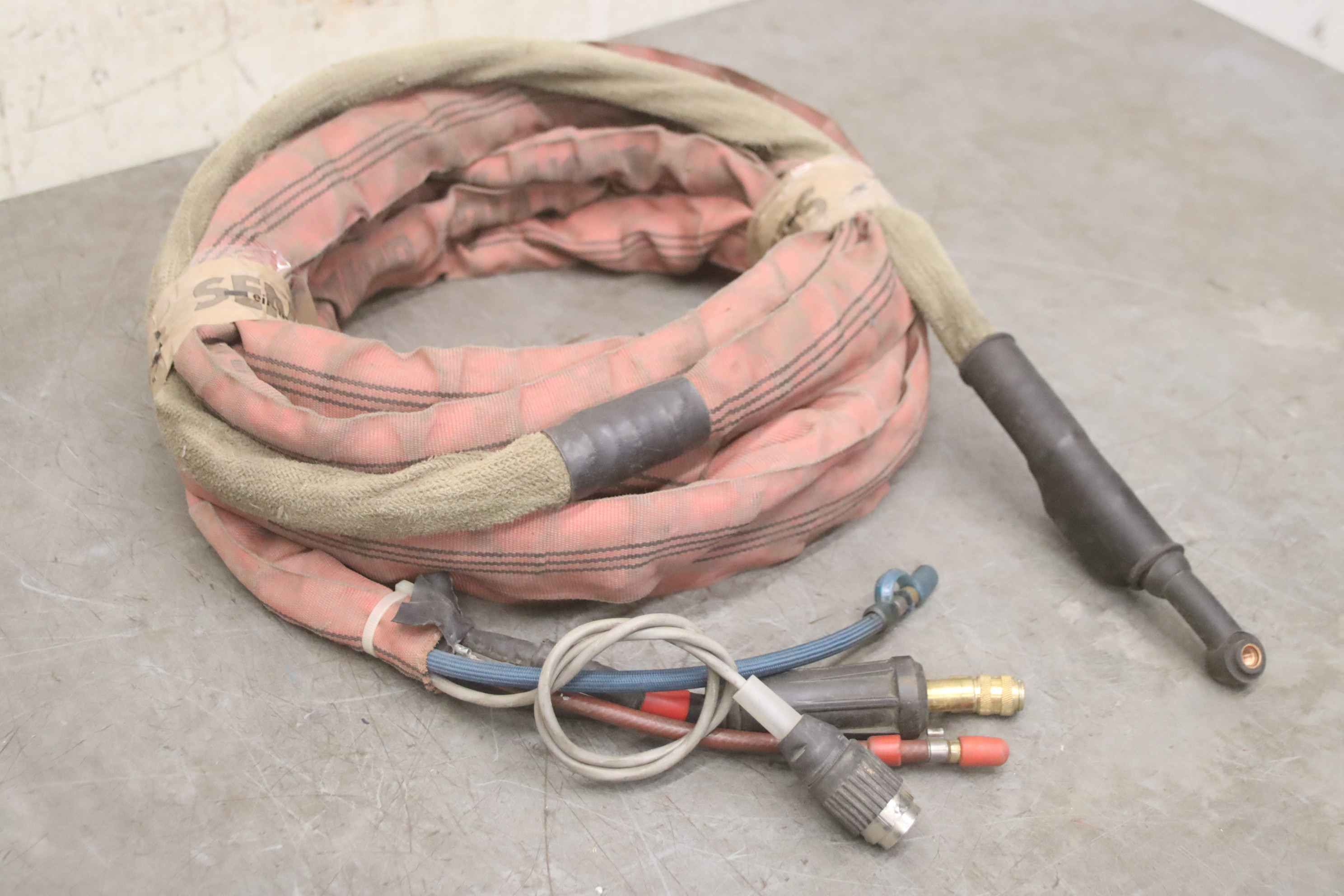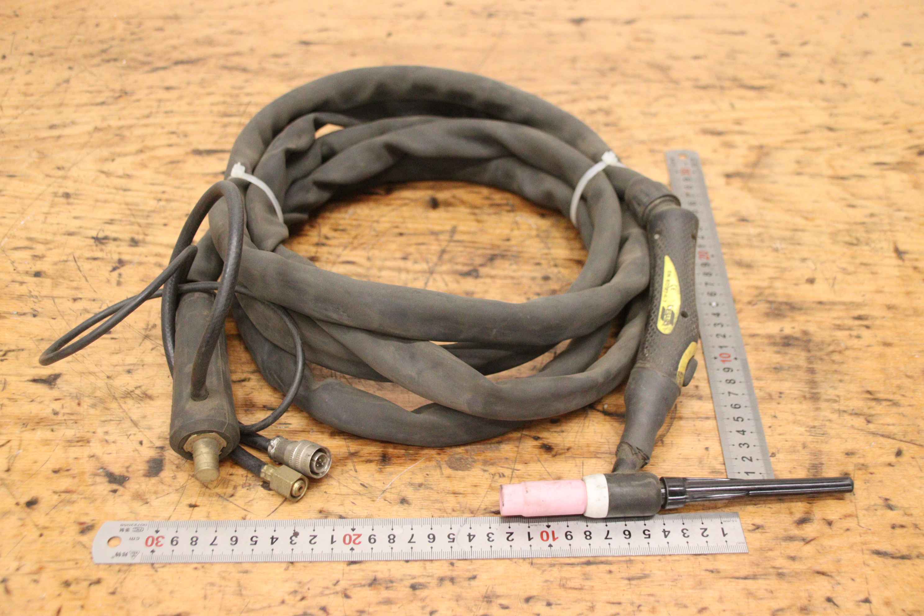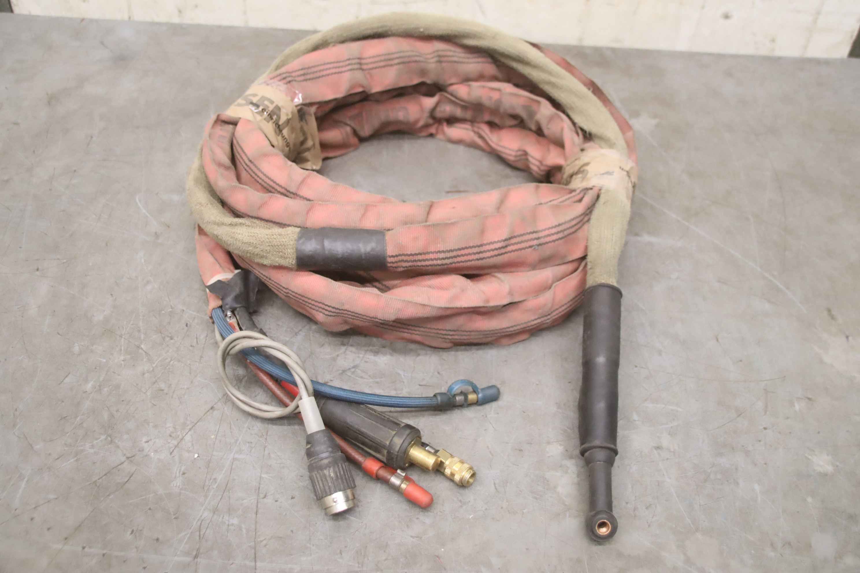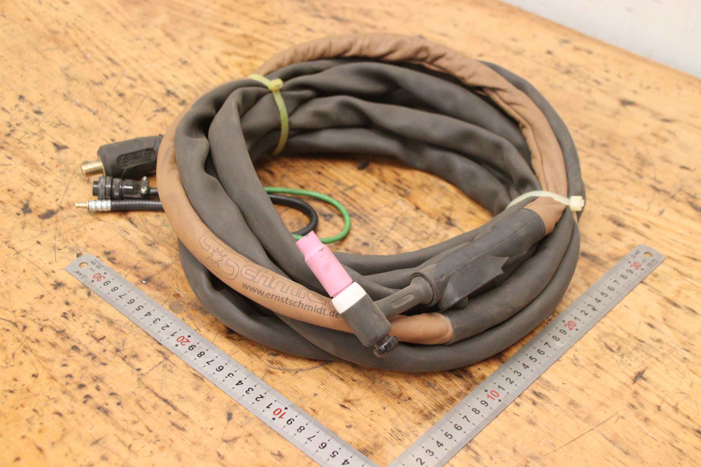 TIG hose package, welding torch, manual welding torch, TIG torch-with: torch body-Length: 7.7 m-Tuchel connector: 5 pin-Water cooled-Weight: 3.2 kg