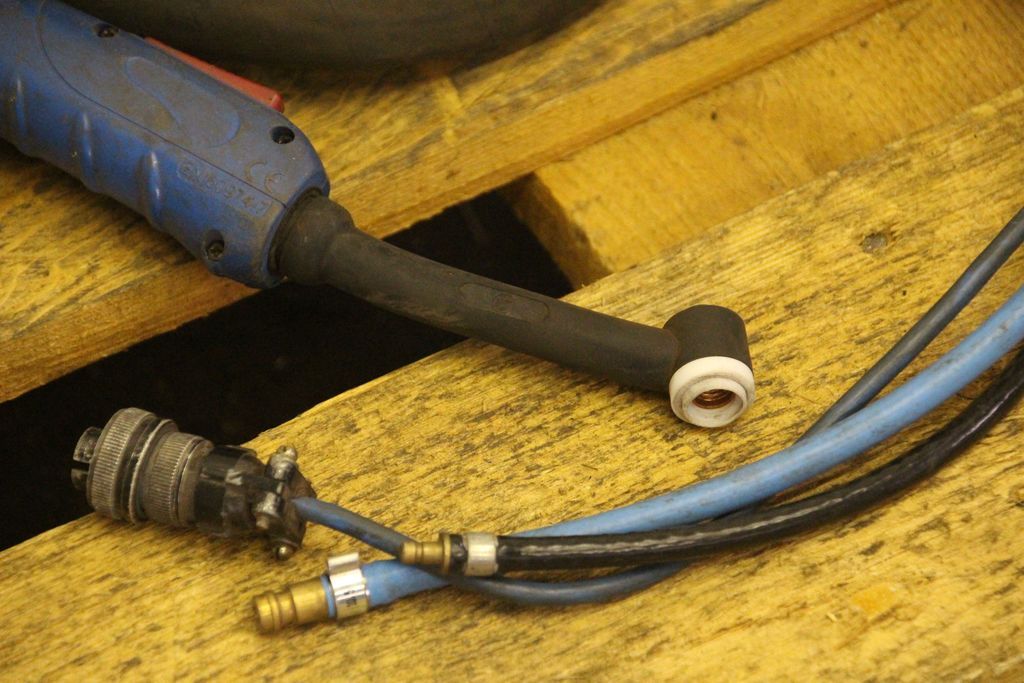 TIG hose assembly, welding torch, hand welding torch, TIG torch -TIG hose package: Gas-cooled -Length: 4 m -Connector: 3-pin -Quantity: 1x hose package available -Price: per piece -Dimensions: 340/340/H70 mm -Weight: 1.8 kg/pc.
