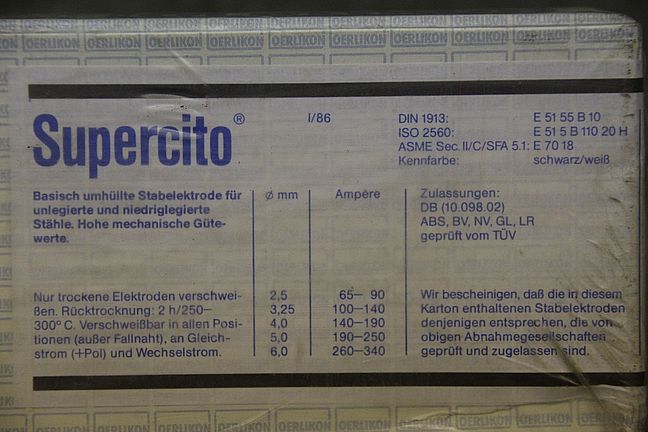 Stick electrodes 5.0 x 450-Type: Supercito E51 55 B 10-Price: per package-Number: 13 packages available-Weight per package: 5.5 kg